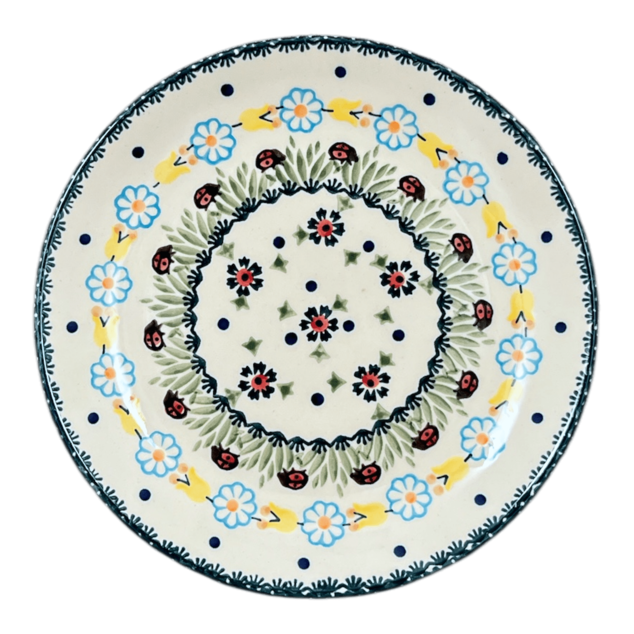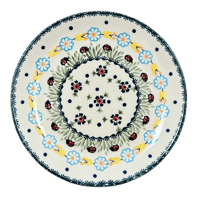 The "Lady Bugs" pattern is a visual delight, combining delicate Lady Bugs and vibrant Flowers in a predominantly White color, with accents in Red, Green, and Yellow. It is a true work of art that will effortlessly enhance the aesthetics of any table setting. Made and hand-painted in Boleslawiec, Poland, by skilled artisans, this salad plate represents the finest craftsmanship and attention to detail.