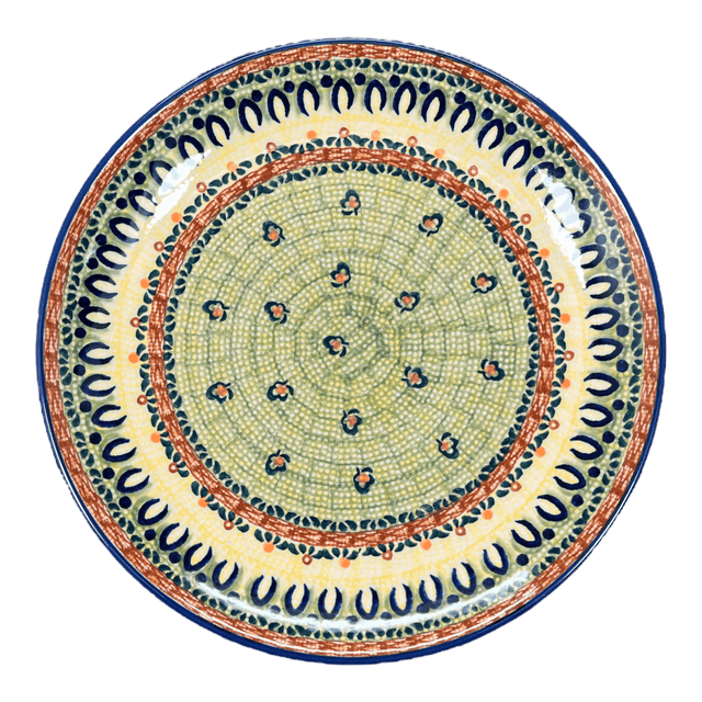 Imagine setting the stage for a delightful dinner with the exquisite Polish Pottery 10" Dinner Plate from Manufaktura, showcased in the vibrant "Baltic Garden" pattern. This charming plate is not just a dish but a gateway to a colorful culinary experience, perfect for those who appreciate both art and functionality in their dining essentials. The captivating design, featuring a geometric pattern in lush green with lively accents of yellow and brown, sets a joyful tone for any meal. Whether you're plating a gourmet meal or a simple comfort food, this plate turns every dinner into a festive occasion.