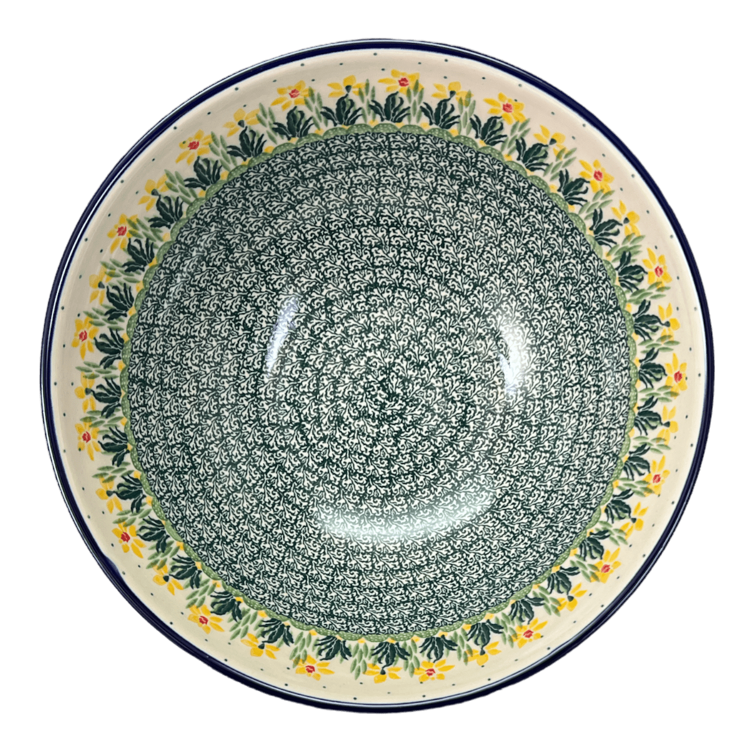 Bowl, Round, 11" in "Daffodils in Bloom" by Ceramika Artystyczna | A055-2122X is backordered and will ship as soon as it is back in stock.