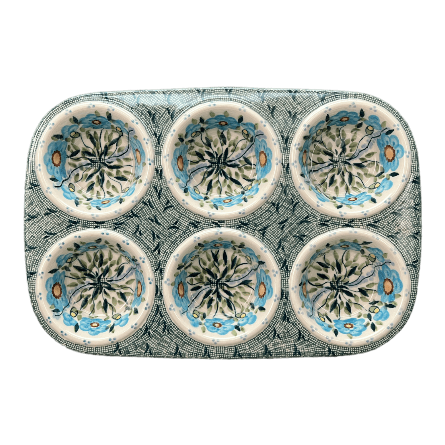 This Polish Pottery piece is as functional as it is beautiful, crafted to withstand the demands of a busy kitchen while adding a splash of color and elegance. Safe for use in the dishwasher, microwave, refrigerator, freezer, and oven (up to 425 degrees), this pan promises not only ease of use but also durability. The high-quality materials used are free of lead, nickel, and cadmium, making them a safe choice for your family. Whether you're whipping up a batch of muffins, cupcakes, or individual servings of your favorite treats, this pan handles it all with style and grace.