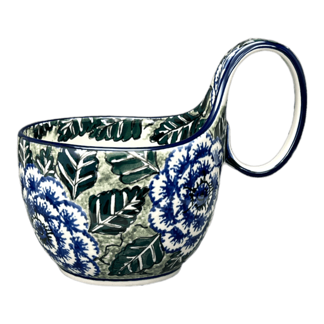 Bowl, Round, Loop Handle, 16 oz in "Blue Dahlia" by Ceramika Artystyczna | A845-U1473 is backordered and will ship as soon as it is back in stock.