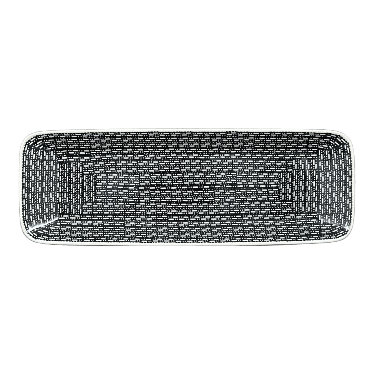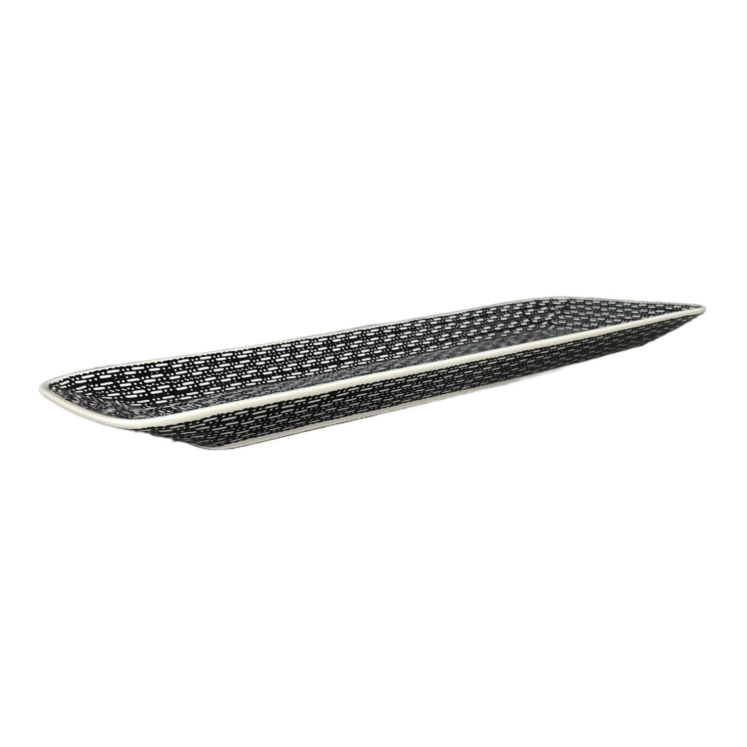 Imagine transforming your dining experience with a touch of artistic elegance that also tells a story of deep-rooted tradition. Enter the Polish Pottery Platter from Manufaktura, a masterpiece of craftsmanship that spans 19.5" x 6.75". Crafted in the heart of Boleslawiec, Poland, this platter is not just a serving tray, but a canvas displaying the captivating "Metro" pattern. Black, adorned with playful white dashes and dots, this design encapsulates simplicity with a twist of sophistication, perfect for presenting everything from hors d'oeuvres to desserts. Its rectangular, elongated shape makes it a versatile piece for any culinary spread, ensuring your treats look as good as they taste.