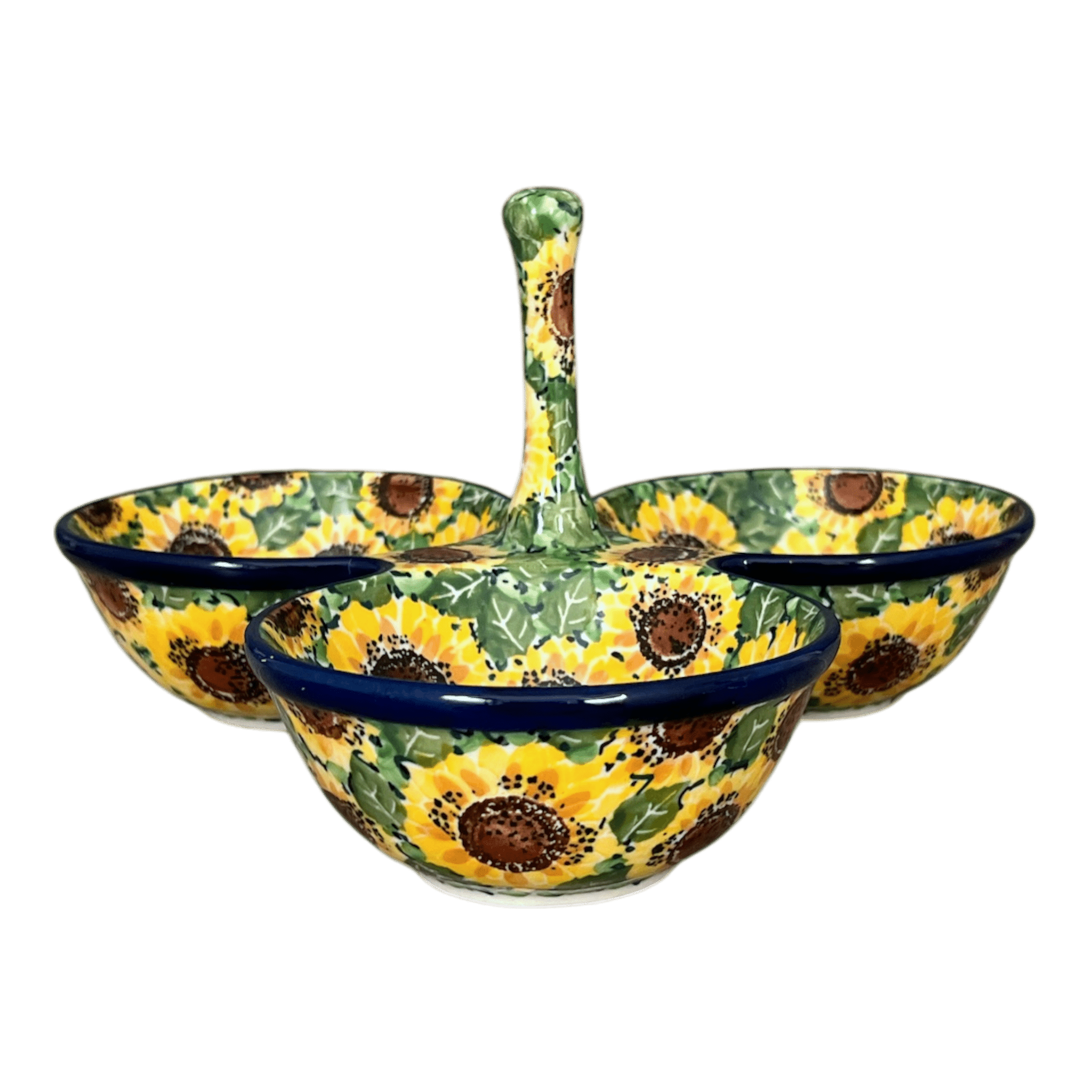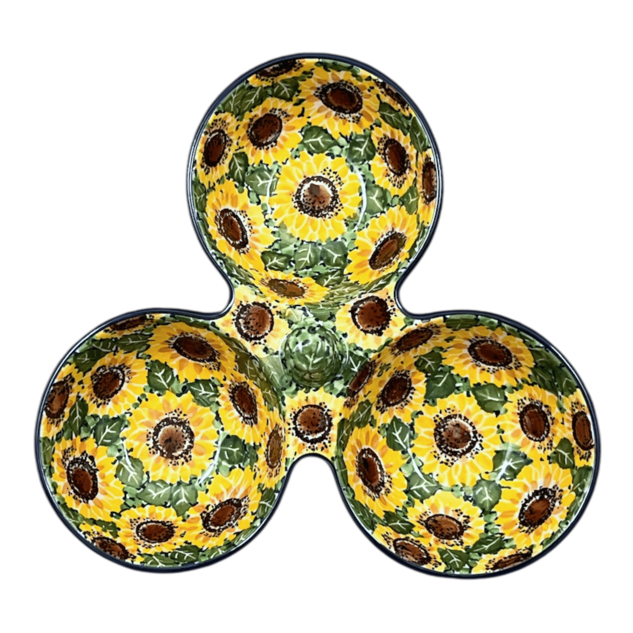 Bowl, Round, 3-Bowl, Divided Server in "Sunflower Field" by Ceramika Artystyczna | AB34-U4737 is backordered and will ship as soon as it is back in stock.