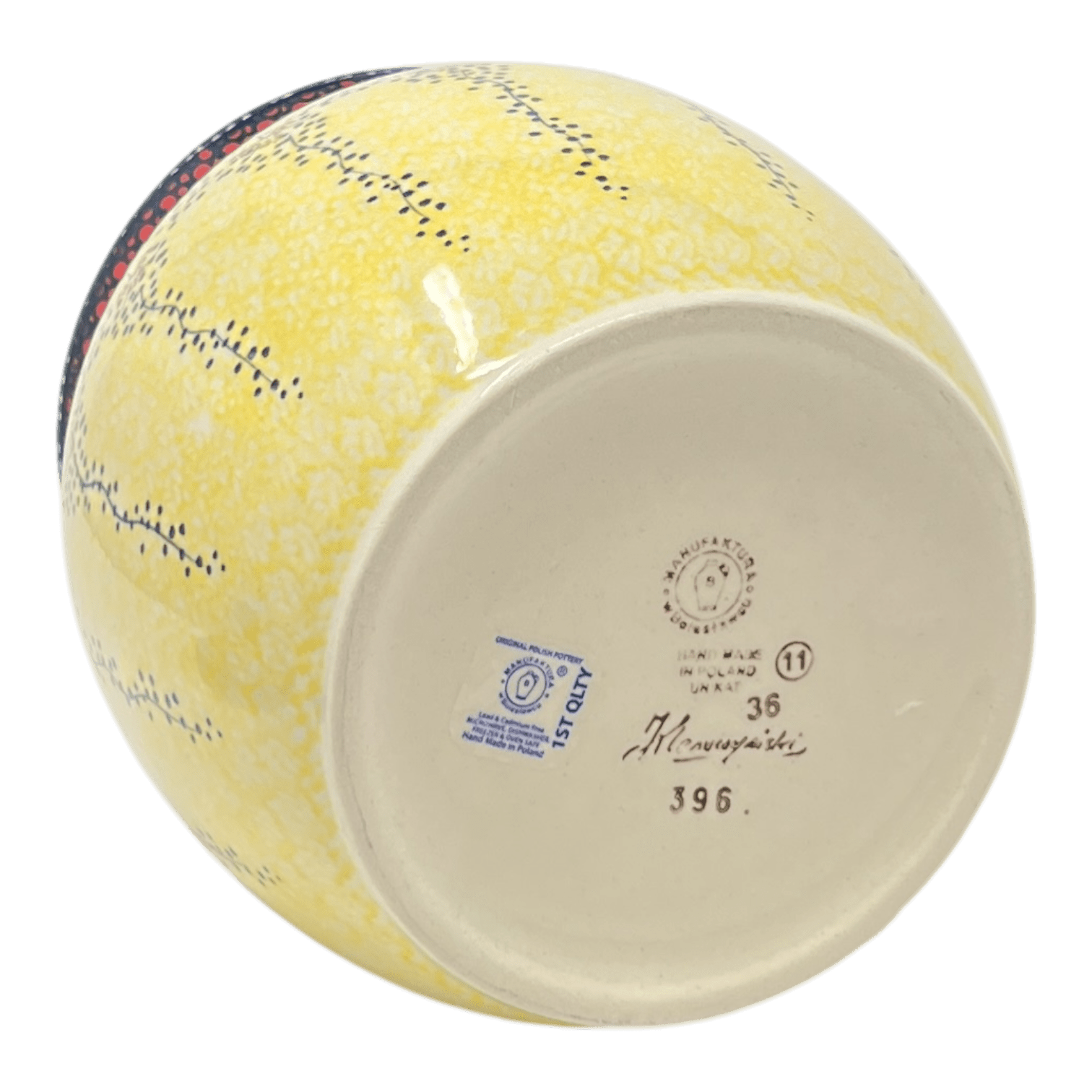 Imagine a splash of sunshine right on your kitchen counter, transforming the everyday into a canvas of vibrant colors and exquisite patterns. The Manufaktura 3 Liter Canister, adorned with the lively "Sunshine Grotto" pattern, is not just a container, but a masterpiece that celebrates the art of Polish pottery. Picture this: a bright yellow background intermingled with a delicate band of light green and white flowers, each edge caressed by tiny teal dots forming elegant triangular clusters. This design isn't just painted; it's a story of tradition and craftsmanship, brought to life by the hands of artists who have reached the pinnacle of their profession.