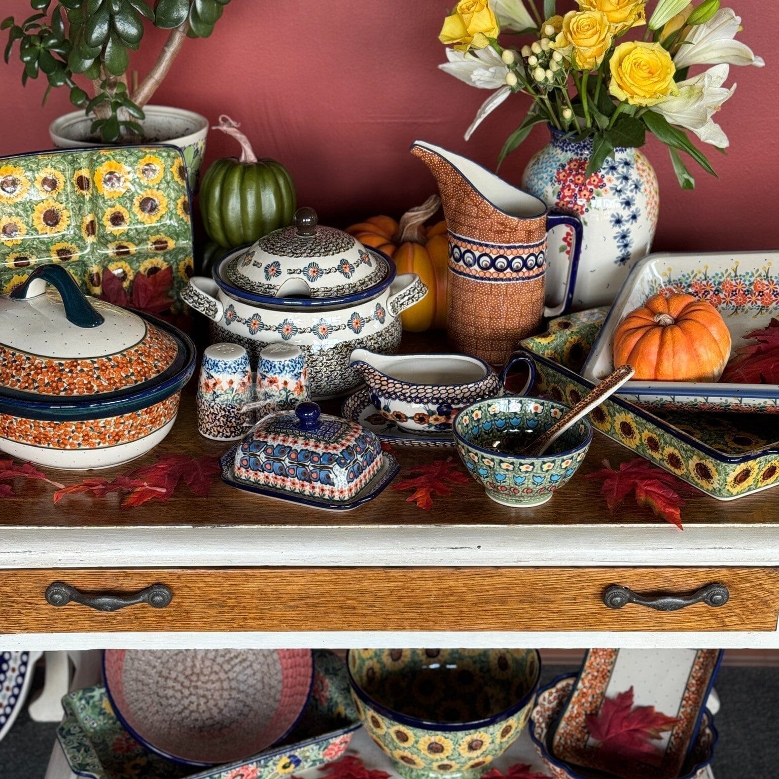 While Polish pottery is extremely durable, it should not be taken directly from the freezer and placed into a hot oven. In addition, cold water or frozen food should not be placed in a hot piece of pottery. Always allow cooling or warming to room temperatures before heating in an oven or placing in a freezer. If taken care of properly, your Polish pottery can last for generations!