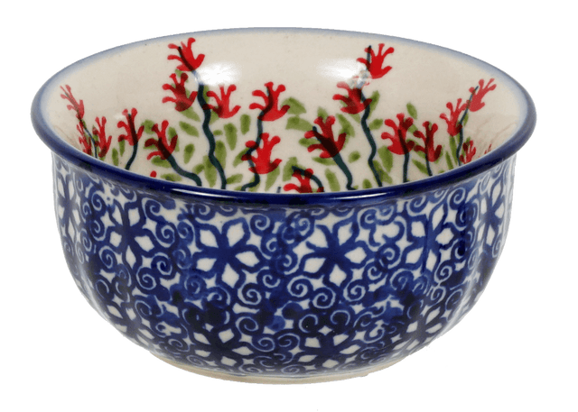 Imagine a little piece of artistry that can brighten your kitchen while being immensely practical! The Polish Pottery Bowl from Manufaktura, adorned with the captivating "Burning Thistle" pattern, is just the right size for that dollop of your favorite dip or a serving of your gourmet ramekin. At 3.5 inches in diameter, this charming bowl is a canvas of vibrant reds, serene whites, and delightful blues and greens, all set against a crisp white background. The slightly scalloped edges not only add an elegant touch but also make it a joy to hold.