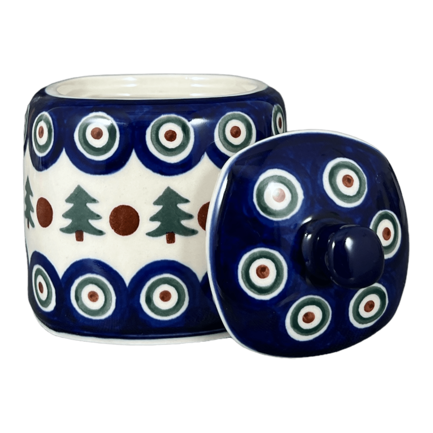 Bowl, Square, Sugar Bowl, 4" in "Peacock Pine" by Ceramika Artystyczna | AF38-366X is backordered and will ship as soon as it is back in stock.