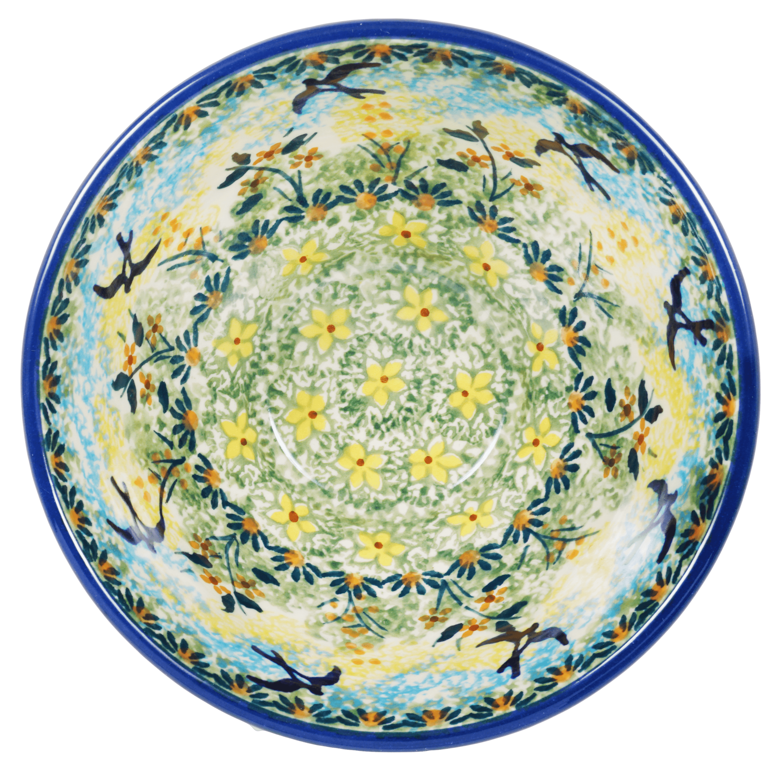 Each bowl is a testament to the skill of Manufaktura's artisans, crafted and painted by hand in the heart of Boleslawiec, Poland. The "Soaring Swallows" design is a Signature pattern, which means it's the brainchild of top-tier artists who oversee the production from start to finish. Such meticulous attention to detail results in a limited supply, making these bowls not just functional kitchenware but also treasured collectibles. Adorned with the "UNIKAT" stamp and the artist's own signature, owning one of these bowls is like holding a piece of Polish art history in your hands.