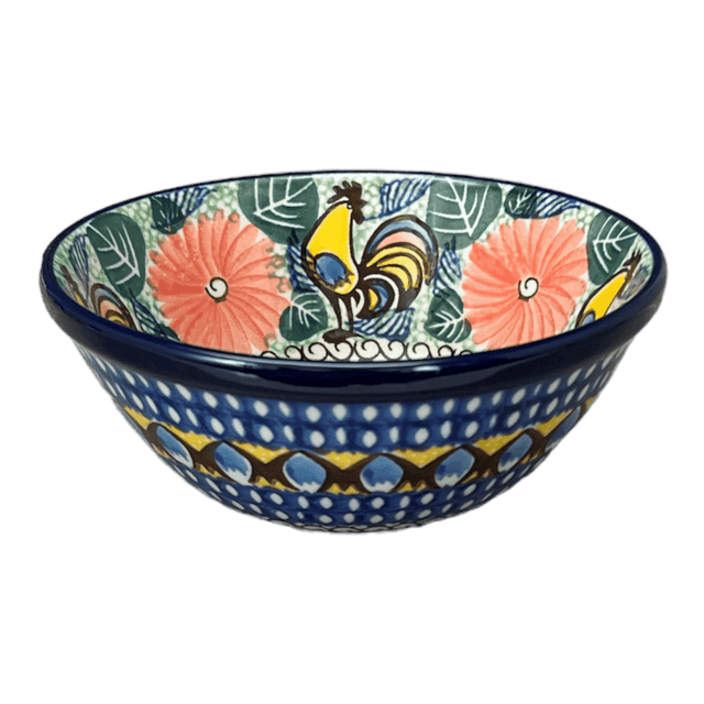 Introducing the Polish Pottery 5.5" Kitchen Bowl by Ceramika Artystyczna in the delightful "Regal Roosters" pattern (U2617). These bowls are not just your ordinary kitchenware - they are a burst of color and charm that will bring a touch of whimsy to your dining experience.