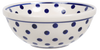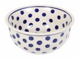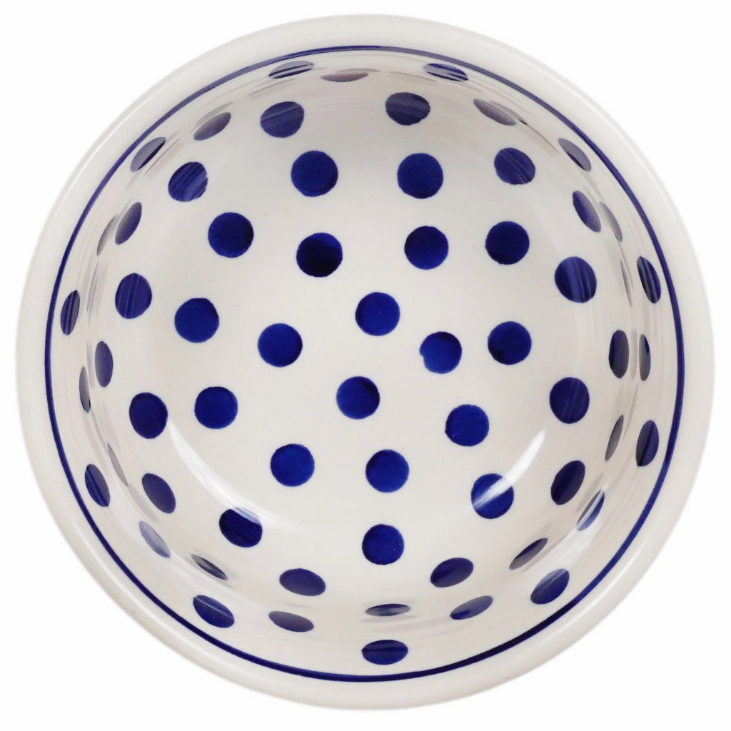 Imagine a delightful splash of charm right on your dining table! Introducing the Manufaktura 5.5" Polish Pottery Bowl in the enchanting "Polka Dot" pattern. This little beauty isn't just any bowl; it's a versatile gem perfect for everything from your morning cereal to a sweet scoop of ice cream or a fresh side salad. Crafted in the heart of Boleslawiec, Poland, this bowl embodies a traditional yet playful design, featuring a crisp white background speckled with whimsical blue dots, each piece hand-stamped with love by skilled artisans using the time-honored "punching" technique.