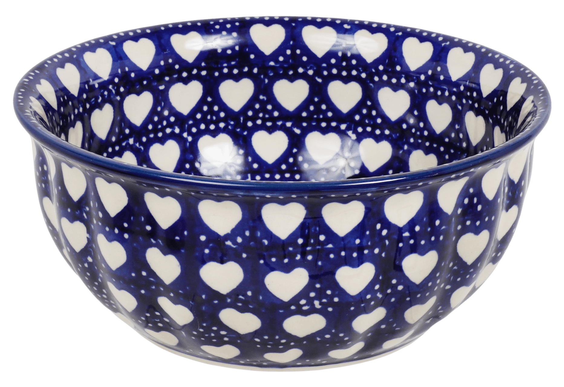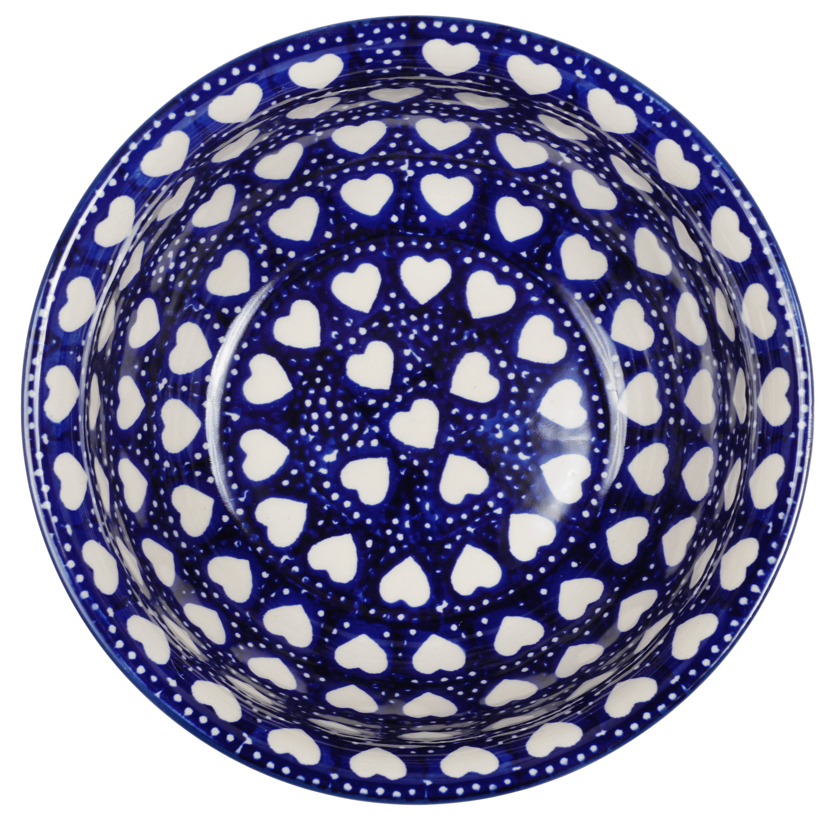Each bowl is meticulously handcrafted in the historic town of Boleslawiec, Poland, where skilled artisans use the ancient "punching" technique of hand stamping to bring the "Torrent of Hearts" pattern to life. This technique, a cherished hallmark of Polish pottery, involves layering colors and shapes in a precise, yet creative manner, ensuring that no two pieces are exactly alike. As a result, these bowls not only serve your culinary creations but also tell a unique story of cultural heritage and artistic dedication. Whether used for a casual family dinner or a festive gathering, these bowls add a touch of elegance and worldly charm to any table setting.