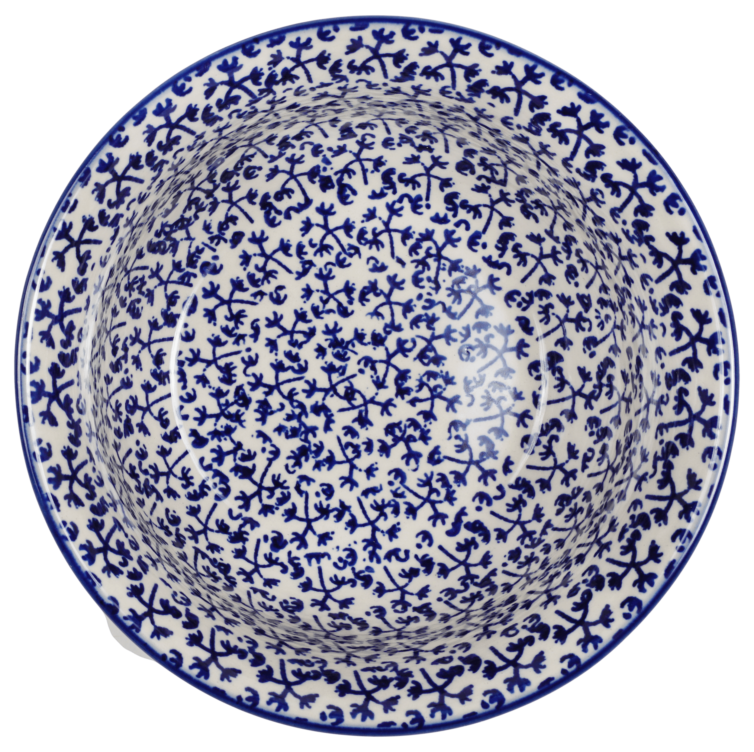 The "Blue Thicket" design is created using the age-old "punching" technique of hand stamping, a testament to the meticulous craftsmanship of Polish artisans. As a part of the Traditional patterns, it reflects a style that is widely recognized and celebrated in the world of Polish pottery. Each bowl, though similar, carries a unique touch as various artists bring their personal flair to this popular motif. With dimensions of 6.5 inches in diameter and a depth of 3 inches, this bowl holds up to 28 ounces of your favorite dishes, making it as practical as it is picturesque. Whether used for everyday meals or special occasions, it promises durability and versatility, being microwave, dishwasher, and oven safe (up to 425 degrees).