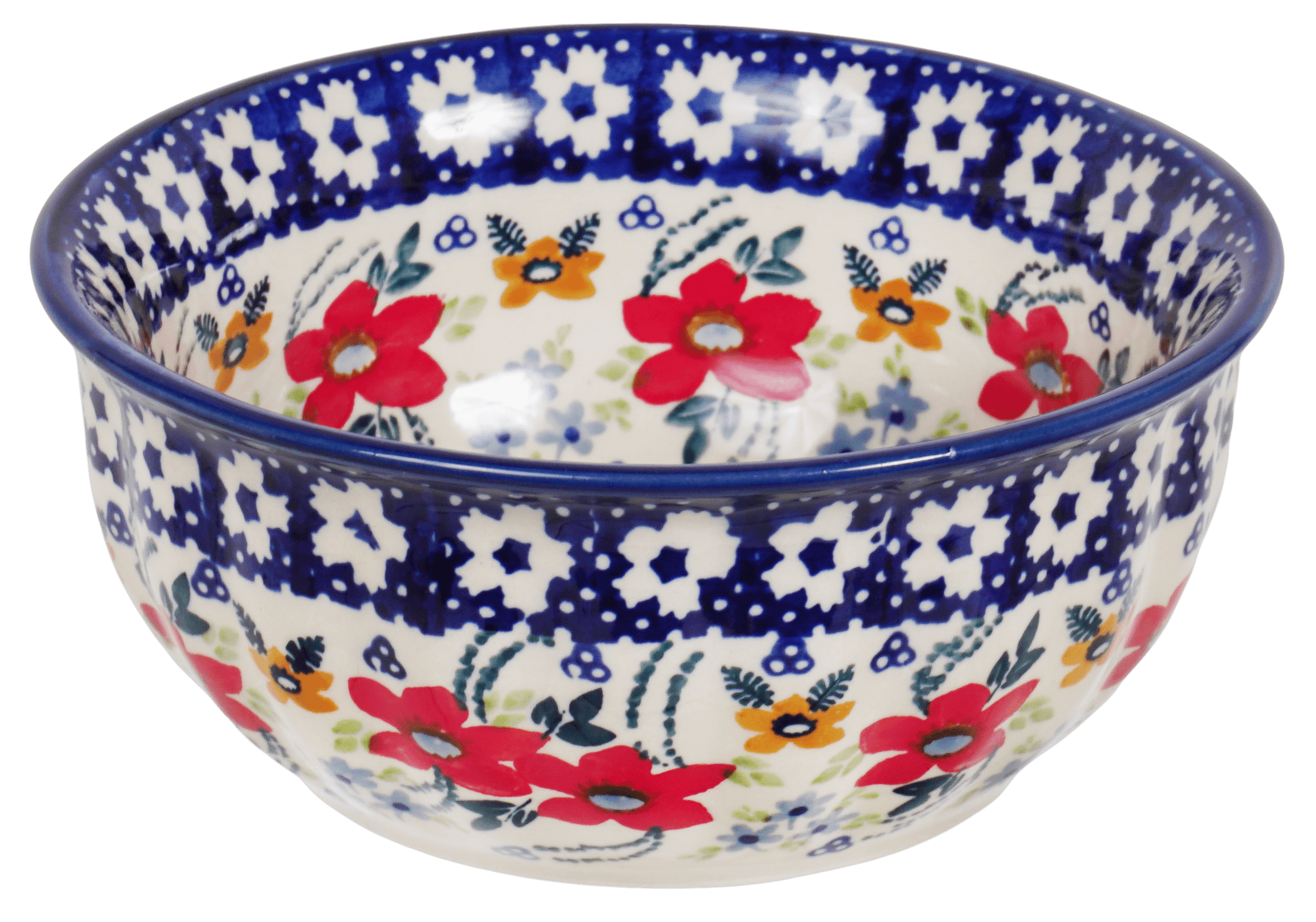 Bowl, Round, 6.5" in "Bold Red Blossoms" by Manufaktura | M084U-P217 is backordered and will ship as soon as it is back in stock.