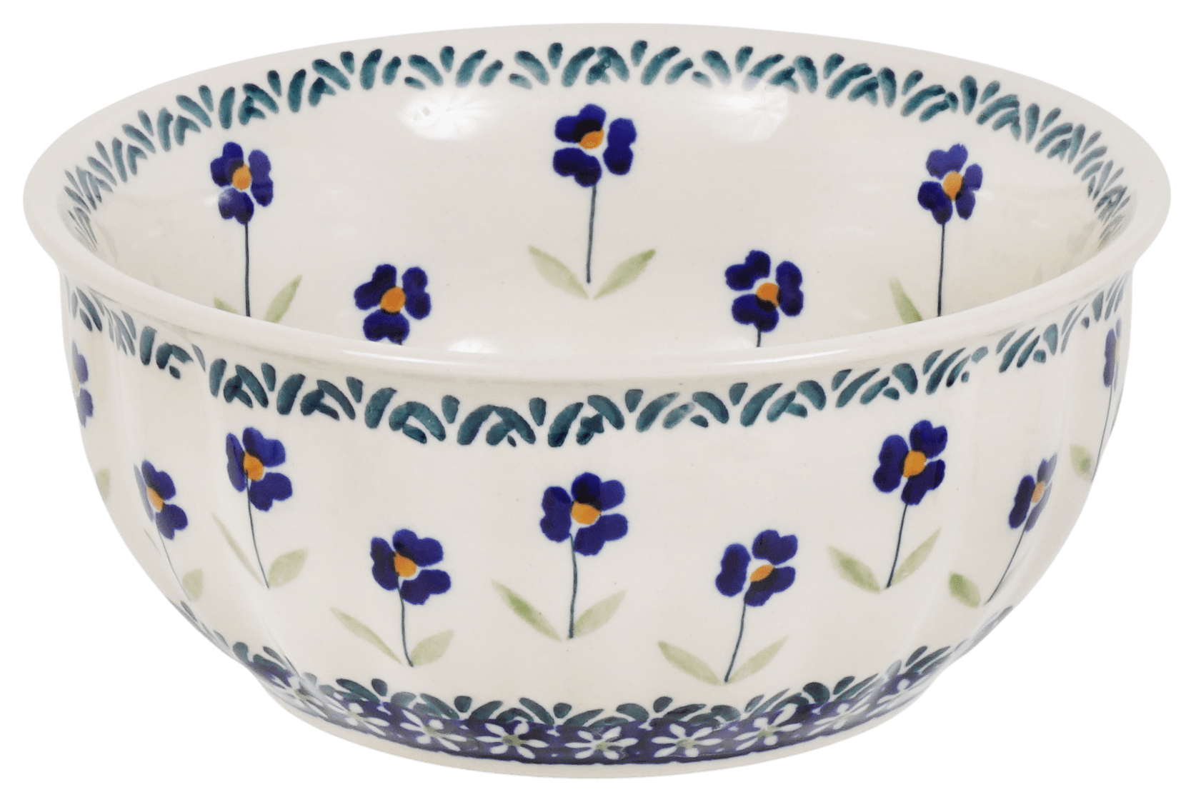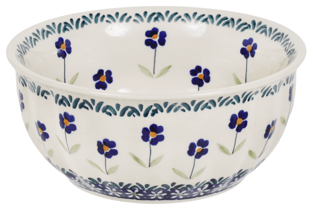 The "Forget Me Not" pattern showcases the traditional Polish pottery style known for its simplicity and elegance. Using the time-honored "punching" technique, artisans hand-stamp each design, making every bowl a unique piece of art. This traditional level of artistry is highly sought after, not just for its classic beauty but for the stories it tells of centuries-old craftsmanship. Despite the simplicity, the variety within these patterns is vast, as a large pool of artists contribute their own touches, ensuring no two bowls are exactly alike. Whether used daily or reserved for special occasions, this bowl is sure to captivate and add a touch of historical luxury to your mealtime.