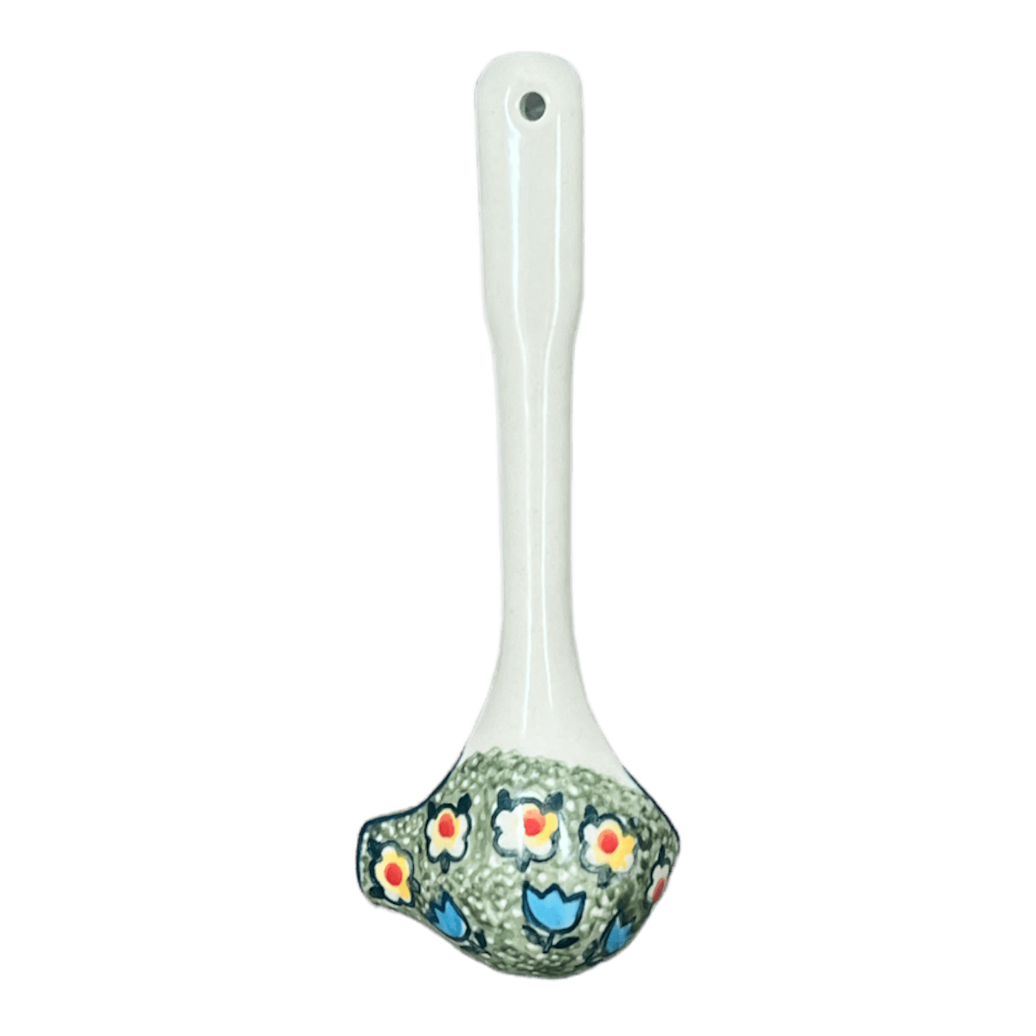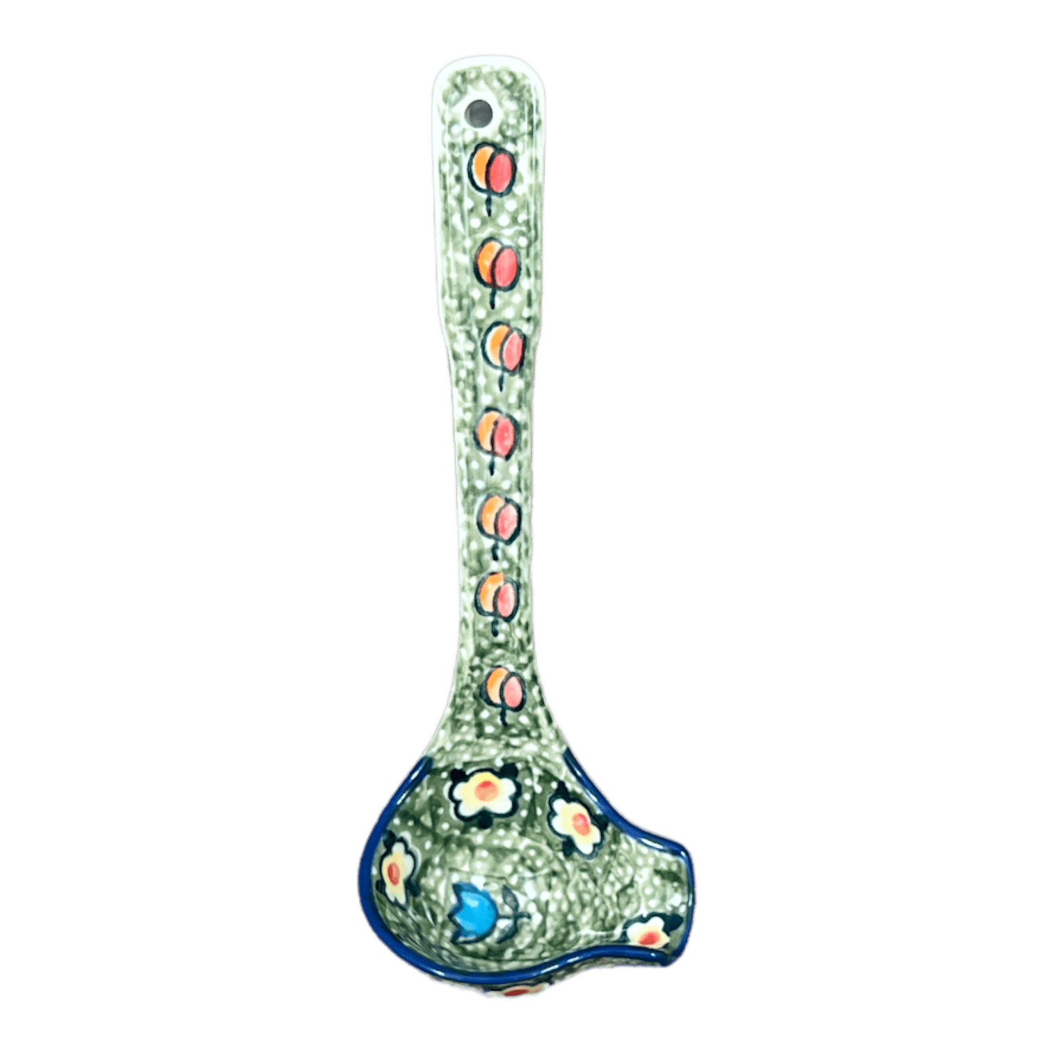 Introducing the enchanting "Amsterdam" pattern Polish Pottery Ladle from Manufaktura, where artistry pours from every curve! Measuring a versatile 7.5 inches, this gravy ladle isn't just a utensil—it's a swirl of vibrant greens, cheerful yellows, soothing blues, and delicate peach hues, each playing their part in a floral symphony. The design blooms with simple white and orange flowers, light blue bellflowers, and playful red and orange berries that wrap around the ladle like a garland of garden wonders. Handcrafted by top-tier artisans in Boleslawiec, Poland, each piece not only serves gravy but also dishes out a feast for the eyes.
