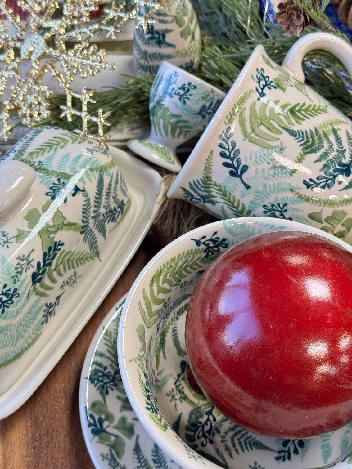 Butter Dish, American, 4" x 7.5" in "Scattered Ferns" by Manufaktura | M074S-GZ39