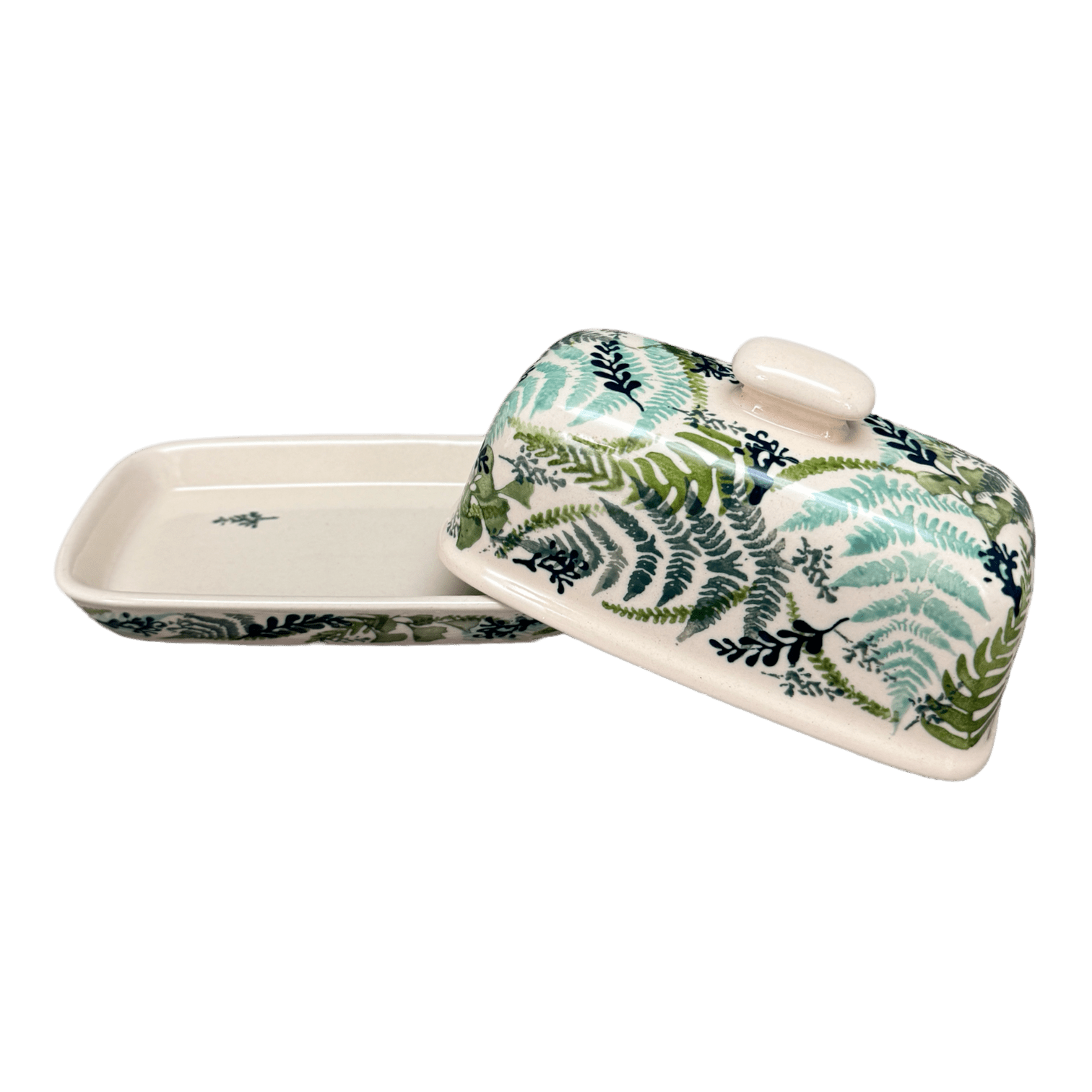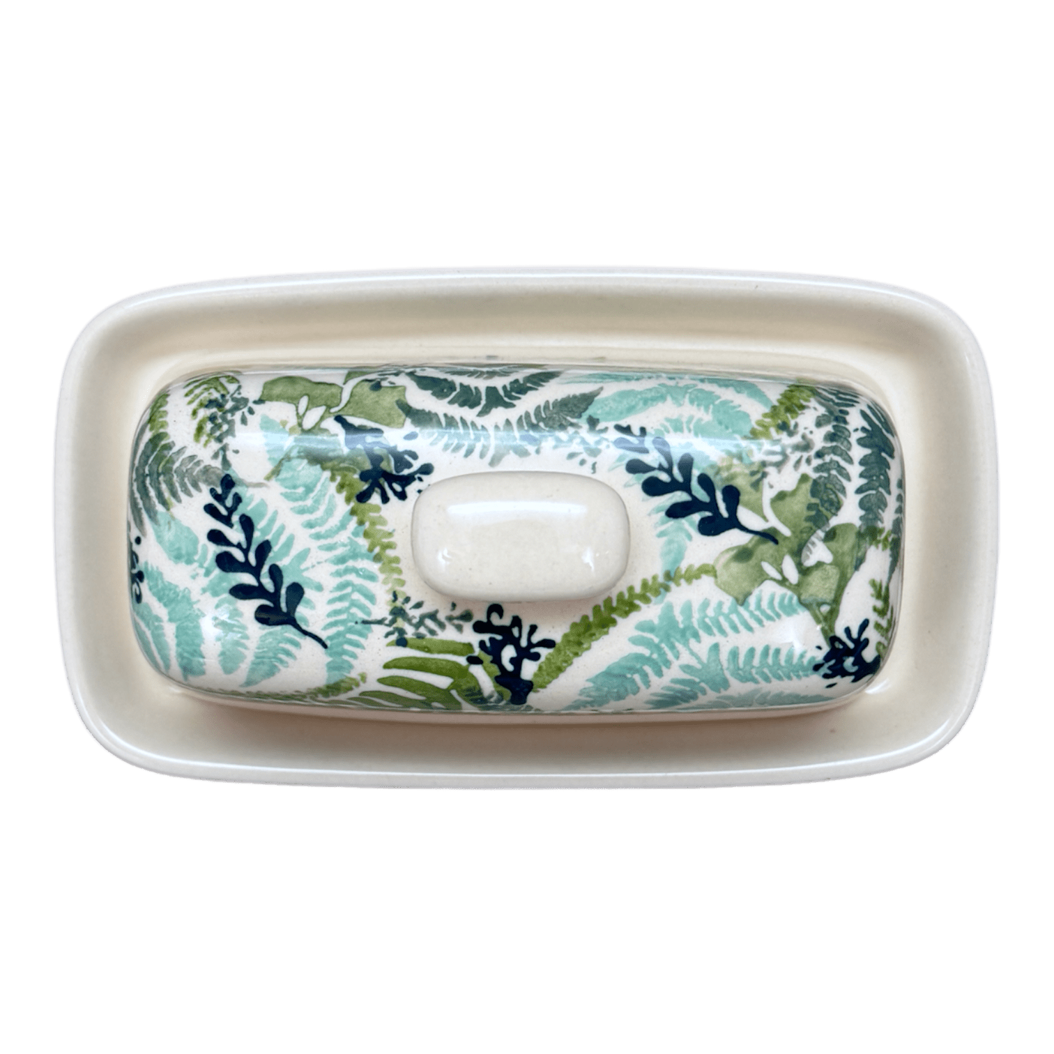 Butter Dish, American, 4" x 7.5" in "Scattered Ferns" by Manufaktura | M074S-GZ39 is backordered and will ship as soon as it is back in stock.