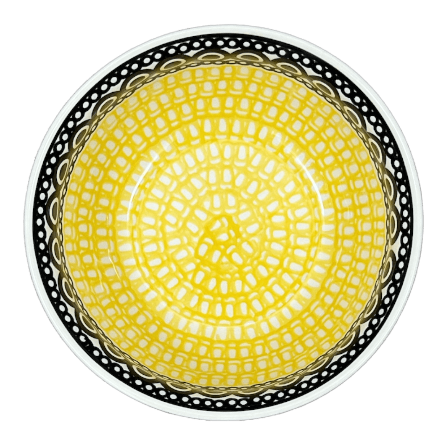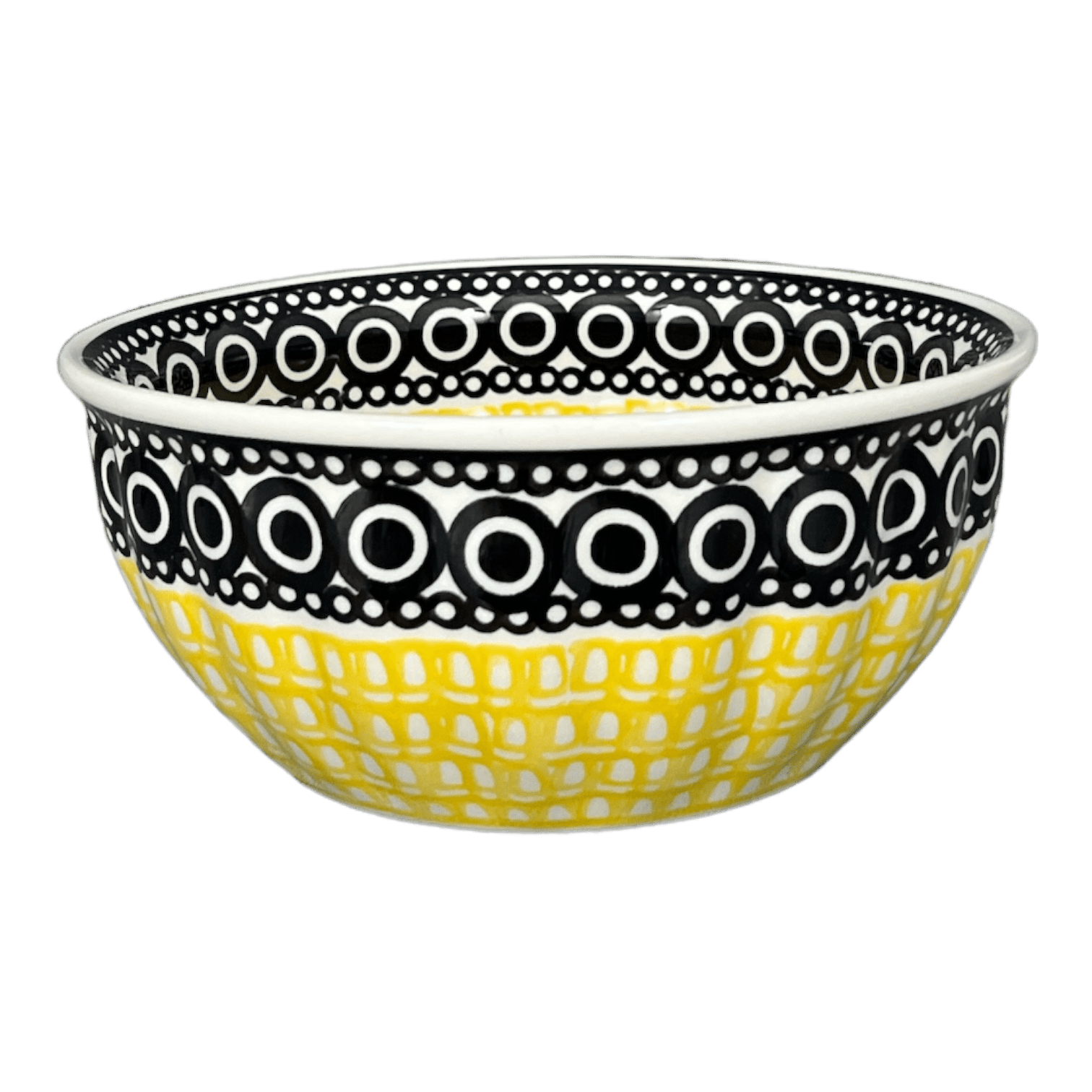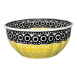 Step into a world where culinary art meets timeless design with the enchanting Manufaktura 7.75" Round Bowl in the captivating "Night Owl" pattern. Perfectly sized for swirling salads, twirling pastas, or cradling your latest baking triumph, this piece is more than just a bowl—it's a canvas that brings your kitchen creations to life! Crafted by the skilled artisans of Manufaktura in Boleslawiec, Poland, this bowl features a mesmerizing array of yellow geometric shapes and playful black dots, all set against a crisp white background. The modern aesthetic of the "Night Owl" design, highlighted with bold black and white accents, promises to elevate any meal into a vibrant feast for the eyes.