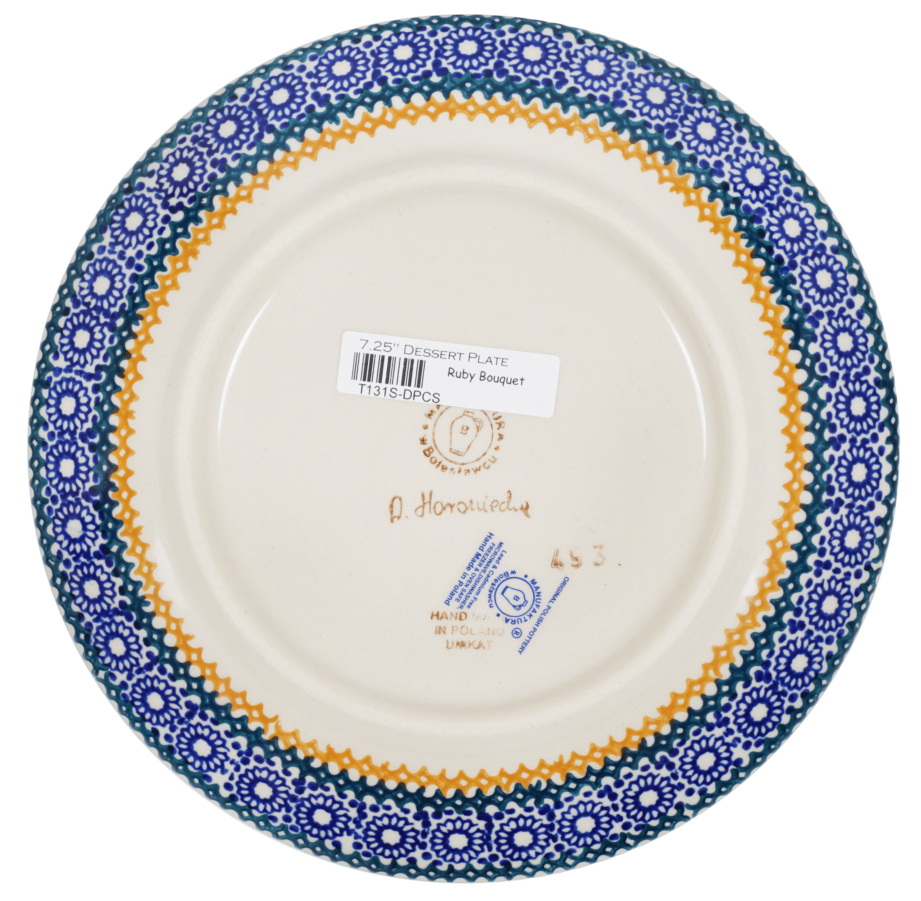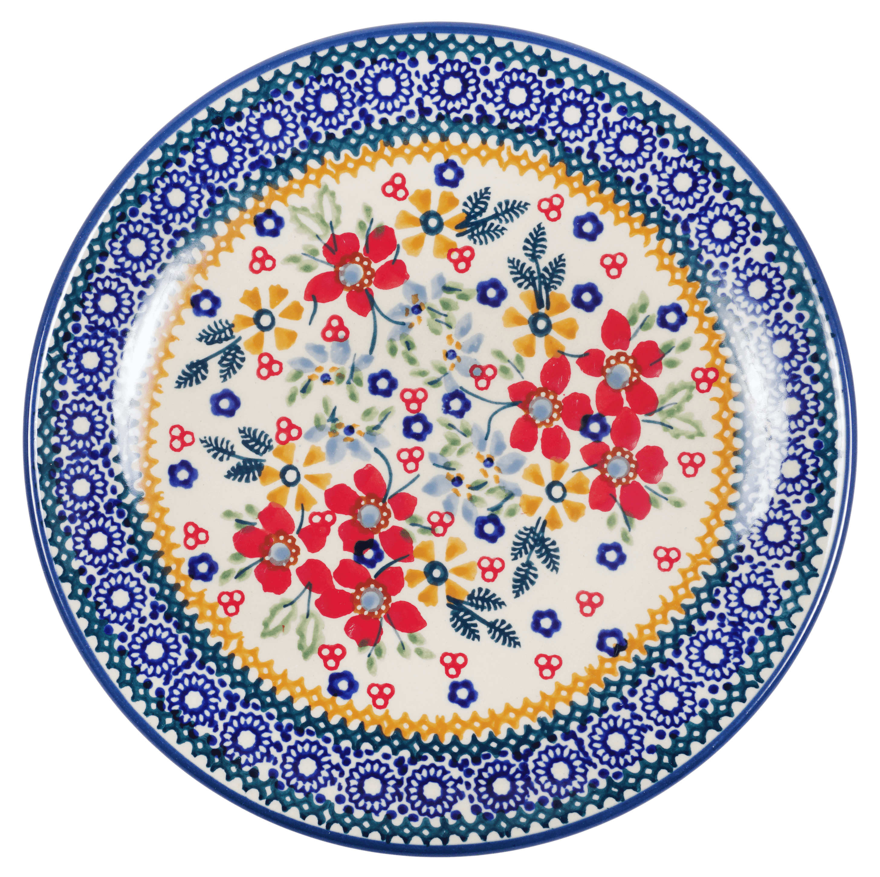 Introducing the Polish Pottery 7.25" Round Dessert Plate by Manufaktura in the captivating "Ruby Bouquet" pattern (DPCS). This little plate is not to be underestimated, as it possesses the power to steal the spotlight at any table setting. With its heirloom quality and exquisite design, the Polish Pottery 7.25" Dessert Plate is ready to make your desserts shine, so don't let it go unnoticed while you fill up on the main course.