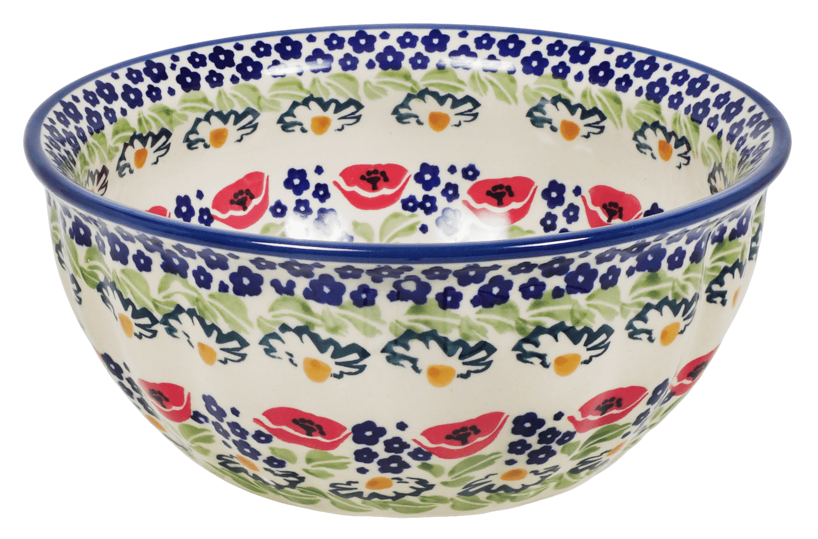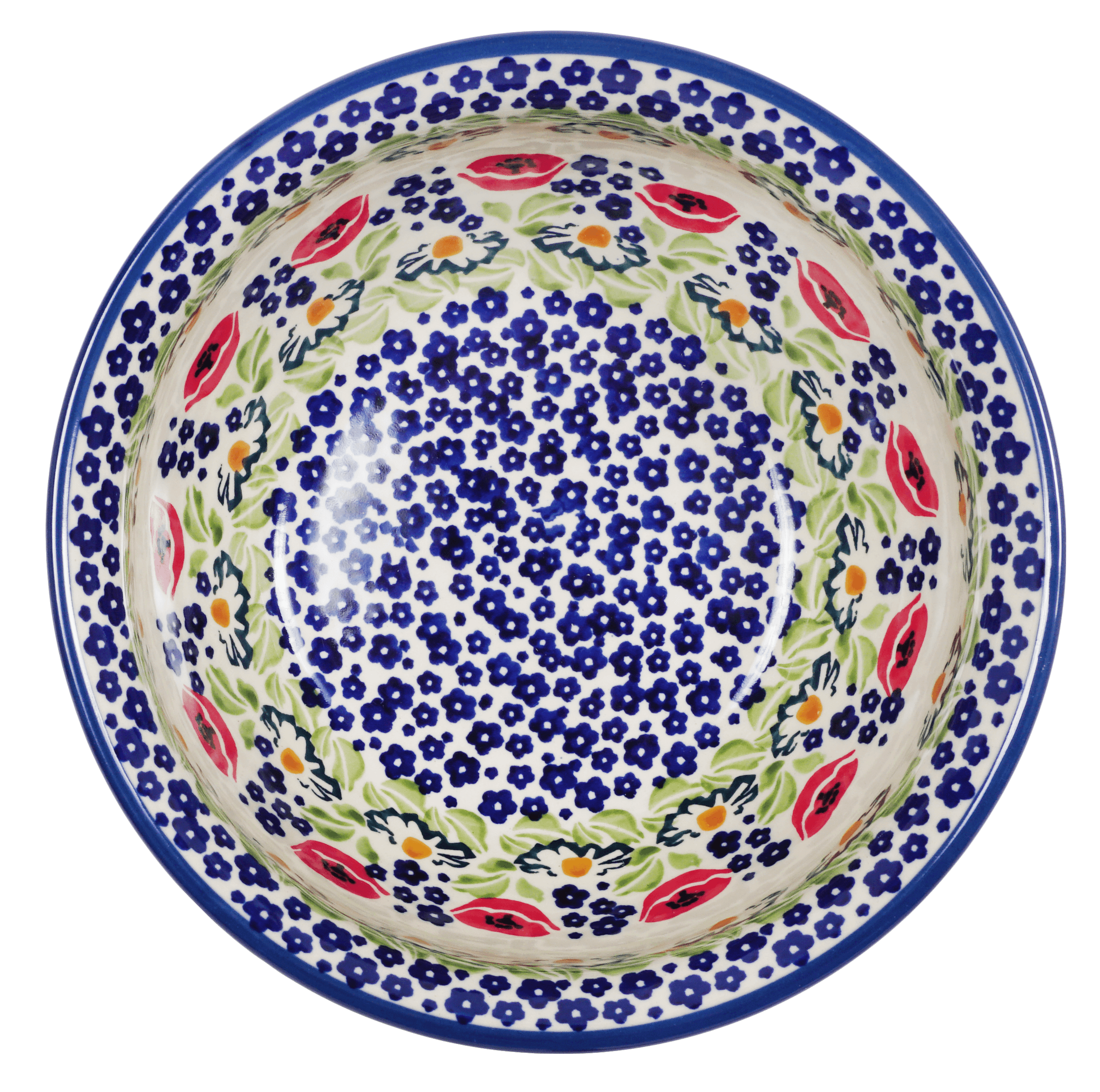 Imagine a bowl that does more than just hold your food; it tells a story of artistry and tradition. The Polish Pottery Bowl from Manufaktura, measuring a versatile 7.75 inches, is a true masterpiece, crafted to transform your culinary presentations into vibrant celebrations. Dubbed the "Poppy Parade," this pattern bursts with vivacious red poppies interspersed with delicate blue blossoms set against a crisp white background, each element painted with meticulous care. A green band, reminiscent of a lush meadow, encircles the center, adding a fresh breath of nature to your table. This isn’t just a bowl; it’s a piece of art that promises to make every meal memorable.