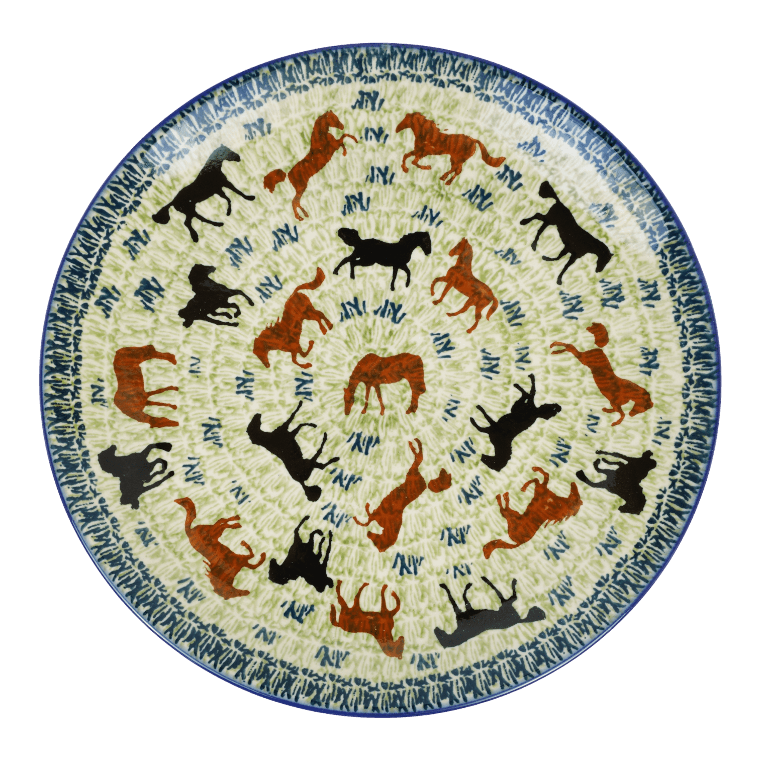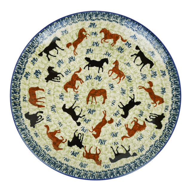 Featuring the "On the Range" pattern, this plate showcases magnificent design elements that incorporate graceful Horses, all in a predominantly Green color with accents in Brown and Black. Each plate is meticulously made and hand-painted in Boleslawiec, Poland by skilled artisans who pour their heart and soul into creating these masterpieces.