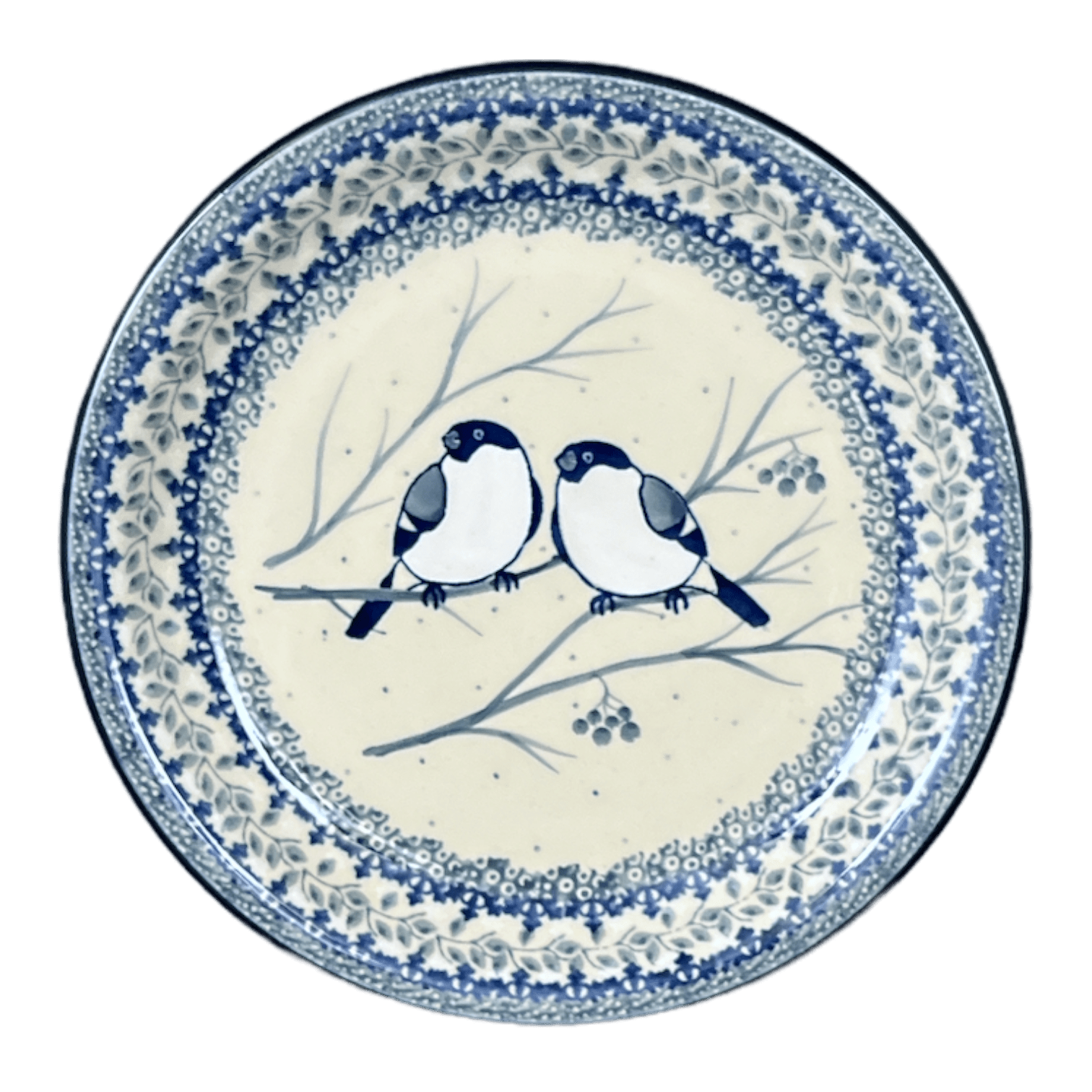 Plate, Round, Salad, 8" in "Bullfinch on Blue" by Ceramika Artystyczna | A337-U4830 is backordered and will ship as soon as it is back in stock.