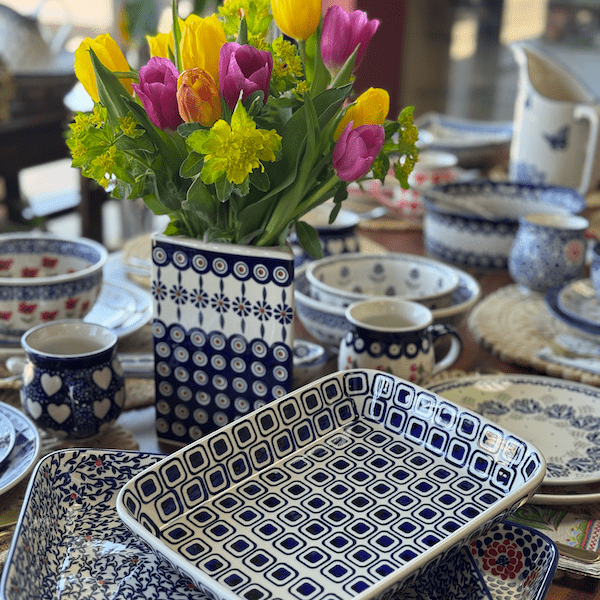 While Polish pottery is extremely durable, it should not be taken directly from the freezer and placed into a hot oven. In addition, cold water or frozen food should not be placed in a hot piece of pottery. Always allow cooling or warming to room temperatures before heating in an oven or placing in a freezer. If taken care of properly, your Polish pottery can last for generations!Â