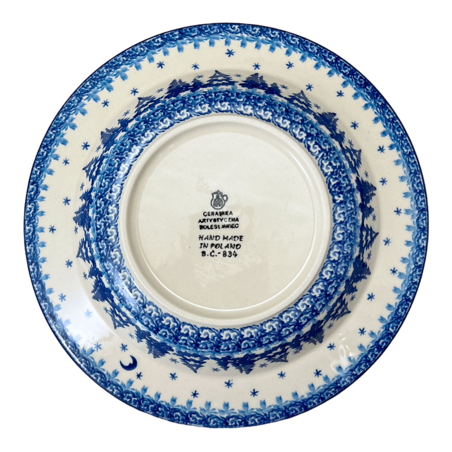 Introducing the enchanting "Winter Skies" Polish Pottery Plate from Ceramika Artystyczna—a delightful masterpiece that brings the magic of a frosty, starlit night right to your dining table. This exquisite 9.25" soup plate is not just a dish but a portal to a winter wonderland, featuring whimsical blue pine trees, twinkling stars, and crescent moons set against a serene white backdrop, bordered in vibrant blue. Each plate is meticulously hand-painted by the finest artists in Boleslawiec, Poland, ensuring that every meal is framed in beauty and craftsmanship.