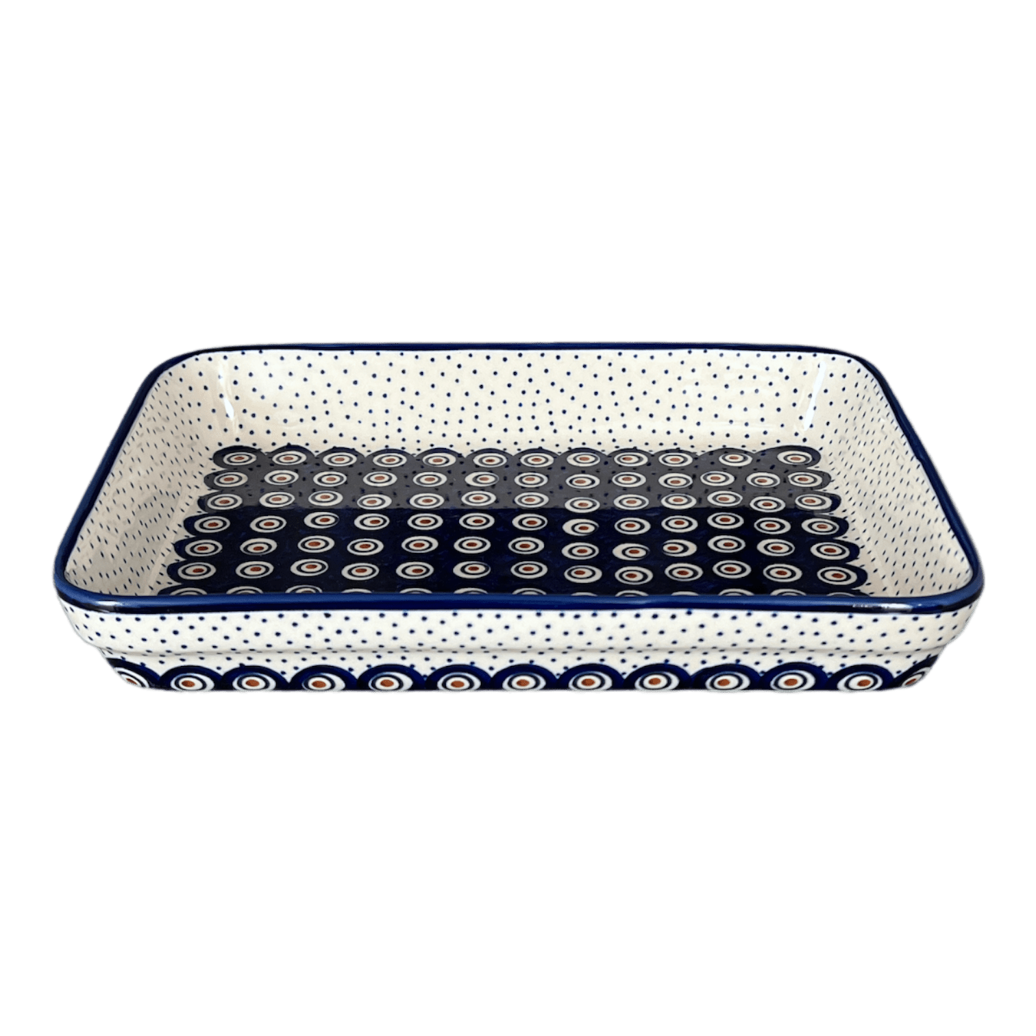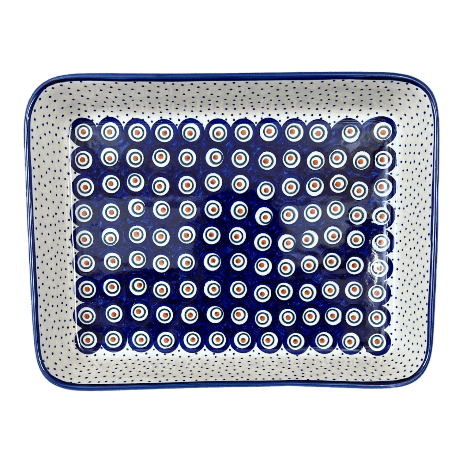 Baker, Rectangular, Shallow, 9" x 11" in "Peacock Dot" by Manufaktura | P104U-54K is backordered and will ship as soon as it is back in stock.