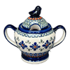 Introducing the adorable Polish Pottery Bird Sugar Bowl by Zaklady! This charming sugar bowl will bring an extra splash of cuteness to your kitchen with its little bird perched on top. Not only is it cute, but it also features the beautiful "Swirling Flowers" pattern, which incorporates floral design elements in a predominantly blue color with accents in green and orange.