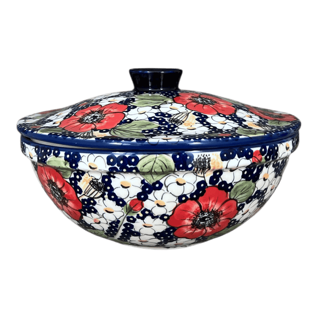 Bowl, Round, with Lid, 9.5" in "Poppies & Posies" by Manufaktura | M159S-IM02