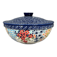 Imagine a bowl that does more than just hold your delicious dishes; it enhances them. Introducing the Manufaktura Polish Pottery Bowl, a round, lidded masterpiece measuring 9.5 inches in diameter. This isn't just any bowl—it's a multifunctional marvel that can serve as both a baker and a stylish way to keep your entrees or sides tantalizingly warm. Crafted in the heart of Boleslawiec, Poland, this bowl is adorned with the "Brilliant Garden" pattern, a lush tapestry of red, yellow, blue, and cadet gray flowers, all set against a crisp white background. The striking colors and intricate design aren't just pleasing to the eye; they transform every meal into a vibrant celebration.