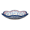 Introducing the enchanting "Sunshine Grotto" Polish Pottery Bowl from the esteemed artisans at Manufaktura! Crafted in the picturesque town of Boleslawiec, Poland, this shallow, scalloped 4.25-inch bowl is a testament to exceptional craftsmanship and a splash of vibrant colors. Whether you're looking to brighten a bookshelf, hold your cherished jewelry, or cradle a flickering candle, this bowl's versatile charm and delicate details make it a perfect addition. The "Sunshine Grotto" pattern, a canvas of sunny yellows accented with whimsical greens and reds, features delightful floral motifs and playful dots, creating a joyous atmosphere in any space.