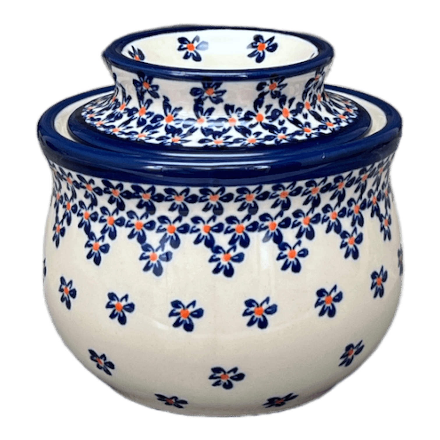 Butter Crock, 4.5" x 3.5" in "Falling Blue Daisies" by Zaklady | Y1512-A882A is backordered and will ship as soon as it is back in stock.