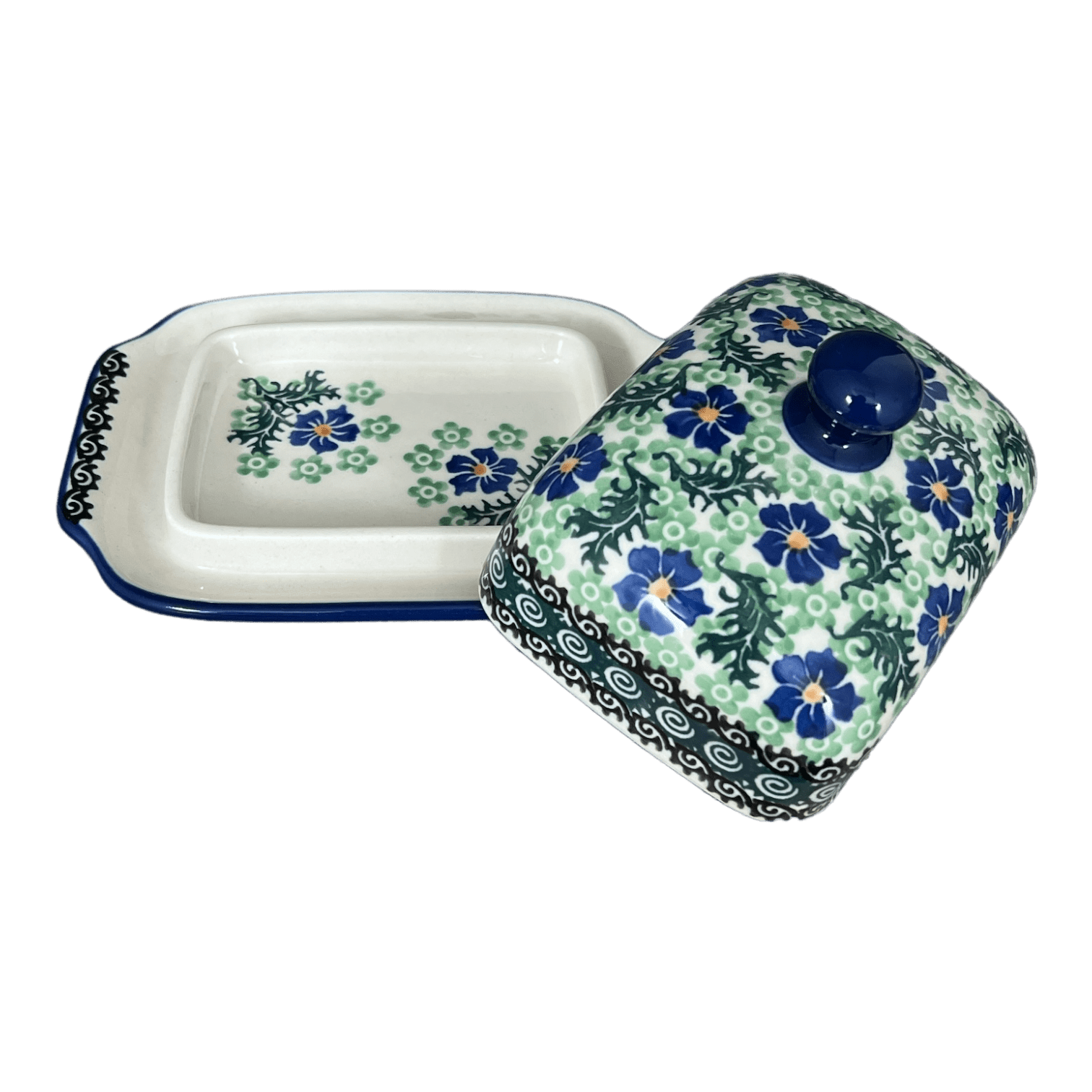 Keep your butter fresh and spreadable with a beautiful, hand-painted Polish pottery butter dish!