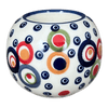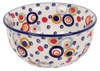 Introducing the enchanting Polish Pottery Canister from Manufaktura, a true masterpiece crafted in the heart of Boleslawiec, Poland. At a charming height of 4.5 inches, this delightful canister is not just a container but a piece of art, adorned with the playful "Bubble Machine" pattern. Imagine a flurry of tiny blue bubbles dancing on a pristine white canvas, interspersed with vibrant circles and rings in hues of blue, red, and a touch of gold. This modern design, brimming with cheerful dots and whimsical circles, brings a splash of color and a dash of joy to any corner of your home.