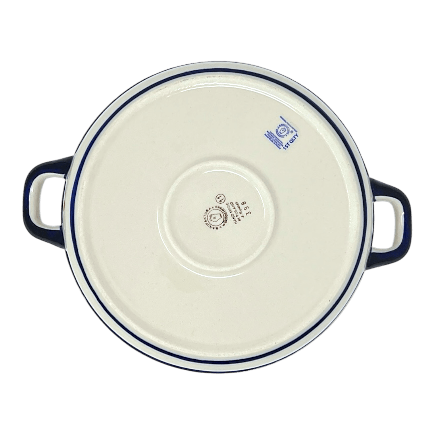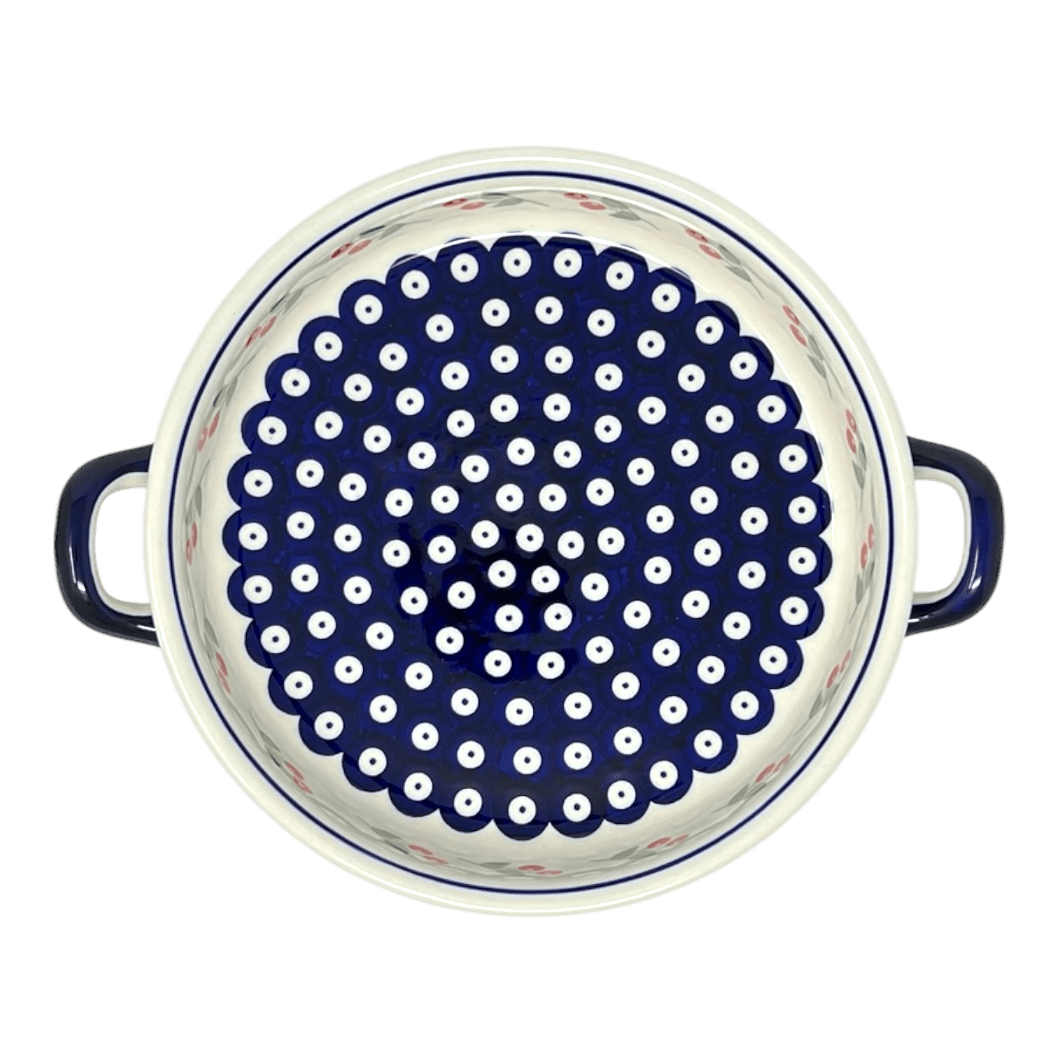 Introducing the exquisite Manufaktura Polish Pottery Casserole dish, a marvel of craftsmanship that brings the joy of traditional Polish art right into your kitchen. This round casserole with charming handles is not just a dish, but a celebration of heritage, measuring 9.25 inches and adorned in the captivating "Cherry Dot" pattern. Imagine pulling this beauty out of the oven, filled with your favorite bubbling casserole or a golden-brown cake, all while adding a splash of color and a story to your dinner table. This dish isn't just for cooking; it's a piece of art, hand-painted in Boleslawiec, Poland, by artisans whose skills have been honed over generations.