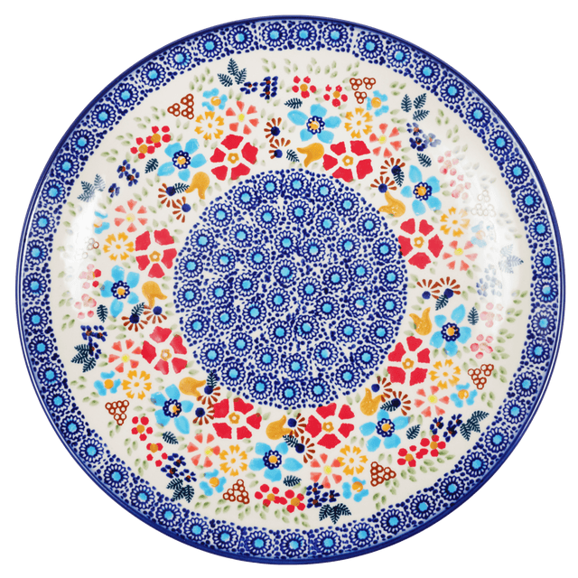 Step into a world of vibrant colors and exquisite craftsmanship with the Polish Pottery 10" Dinner Plate from Manufaktura, adorned in the stunning "Festive Flowers" pattern. This piece is not just a plate, but a canvas that showcases a breathtaking array of flowers painted in a symphony of red, blue, orange, and white hues, set against a pristine white background. The center features delicate blue blooms, encircled by a lively assortment of flowers in various shades, making every meal a visual feast. Designed for those who appreciate the art of dining, this plate allows you to mix and match with other unique pieces, creating a dinner table that's a masterpiece in its own right.