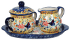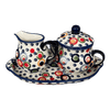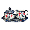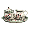 Function meets form in this exquisite Polish Pottery set, crafted in the heart of Boleslawiec by skilled artisans. Renowned for its durability and versatility, this pottery is perfect for daily use or special occasions, safe for use in the dishwasher, microwave, freezer, and even the oven up to 425 degrees. Free from lead, nickel, and cadmium, it offers peace of mind along with its visual appeal. Whether you're hosting a dinner party or enjoying a quiet breakfast, this cream and sugar set will add a splash of color and a dash of old-world charm. Mix and match with other pieces to create a stunning tableau that will leave your guests talking long after they leave.