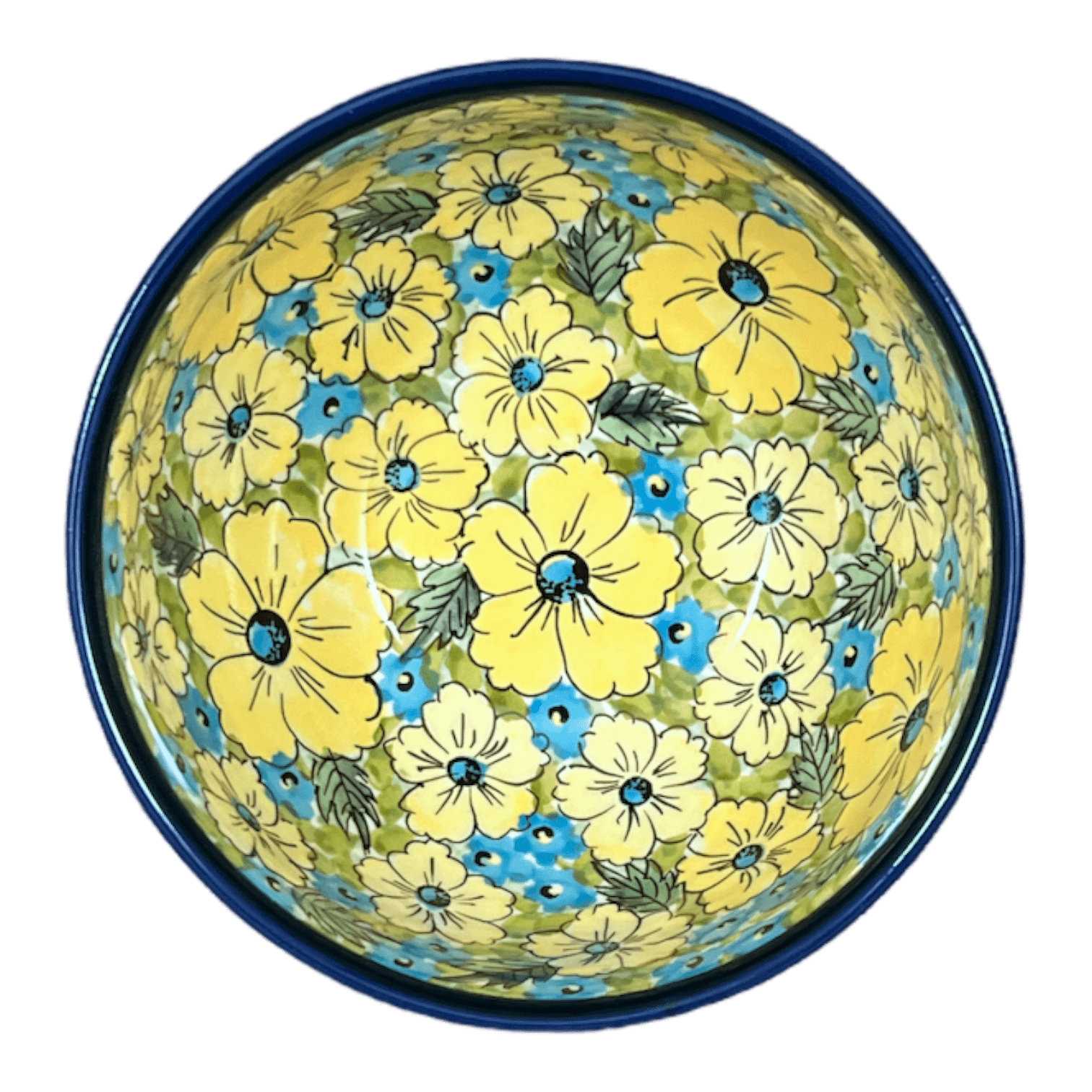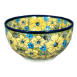 Introducing the vibrant Zaklady Polish Pottery Bowl from the "Sunny Meadow" collection—where functionality meets artistry in a burst of color! This delightful 6.25-inch bowl, crafted with care in Boleslawiec, Poland, is more than just a container; it's a canvas showcasing a lively floral pattern. Imagine starting your day with a bowl of your favorite cereal, the large yellow flowers and playful blue blossoms dancing amidst a green, leafy backdrop greeting you with morning cheer. This pattern isn't just pleasing to the eye; it's a Signature masterpiece, a testament to the skill of artists who oversee each creation from conception to final brush stroke, ensuring every detail is perfect.