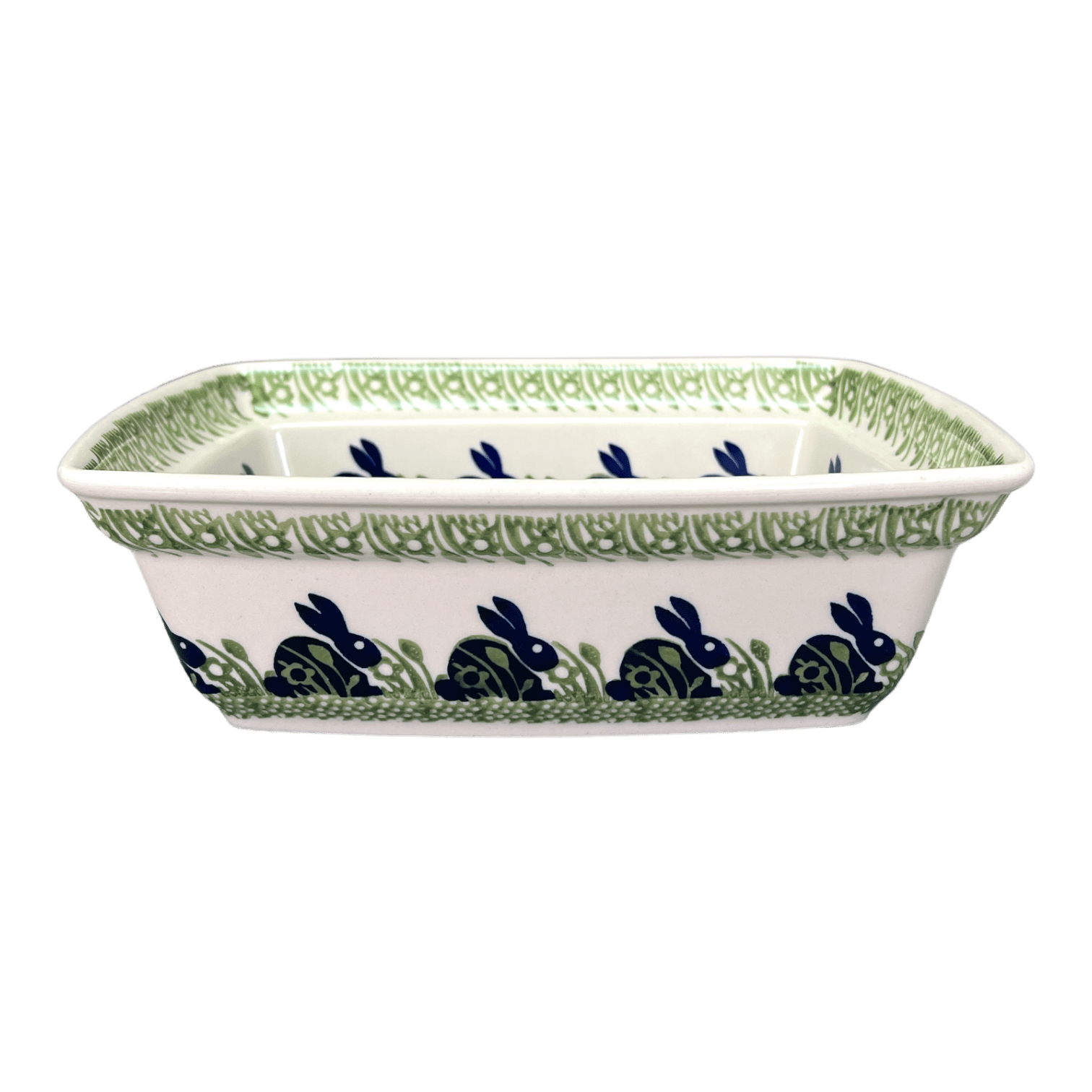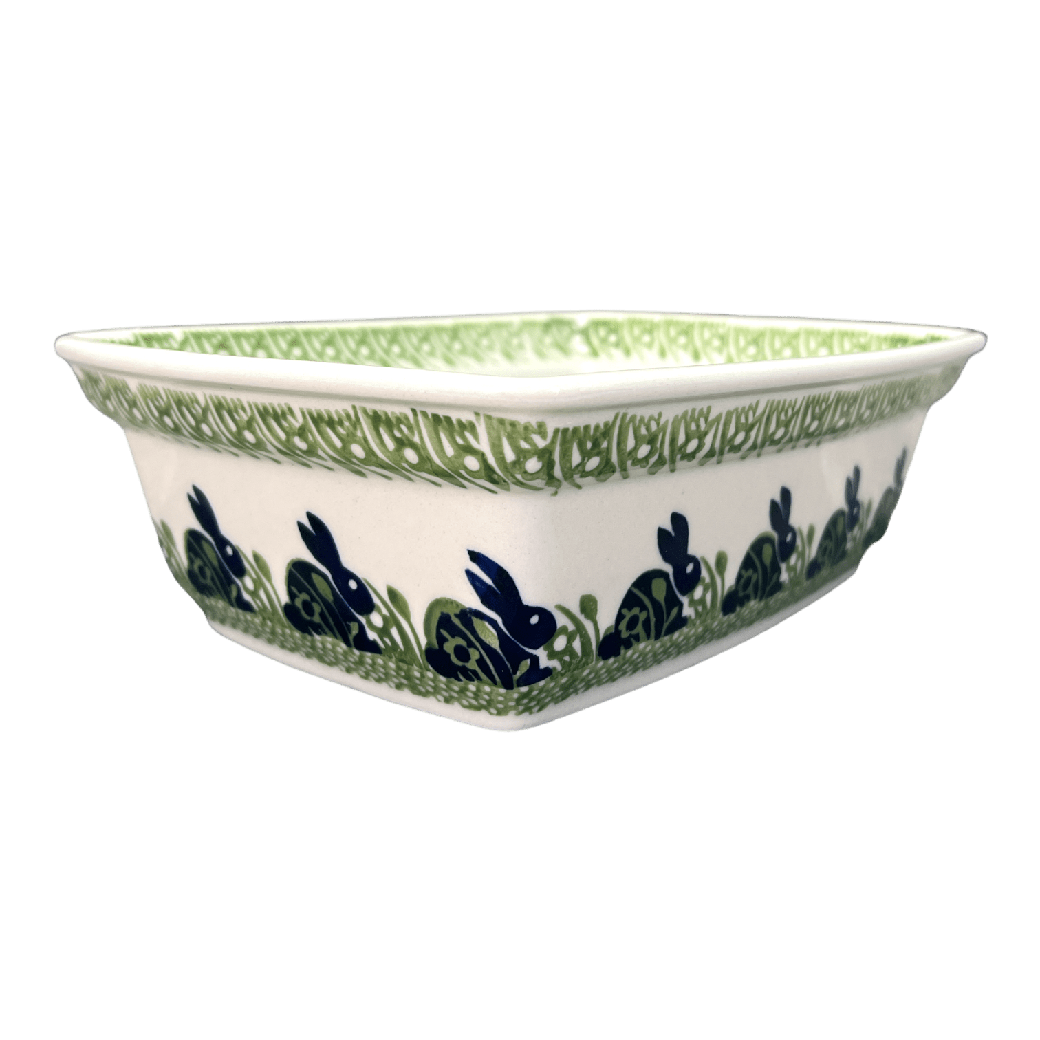 Introducing the Polish Pottery 7.5" x 10" Deep Casserole Dish by Manufaktura in the delightful "Bunny Love" pattern (P324). This charming dish is not only practical but also adds a touch of whimsy to your kitchen. Whether you're baking a casserole, whipping up a side dish, roasting meats and veggies, or concocting your own culinary masterpiece, this deep baker is the perfect companion!