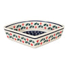 You may safely use Polish pottery in the microwave and in a conventional oven at temperatures up to 425°F. We recommend you heat your stoneware up to temperature with the oven. Make sure to always cover the entire bottom of the dish when baking. For example, you don't want to put a single chicken breast in the center of a baker and leave the rest of the surface area uncovered, as the empty spots will heat at a different rate than those with food on them. Polish pottery does not like quick changes in temperature or uneven heat sources, and thermal shock WILL result in a broken dish.