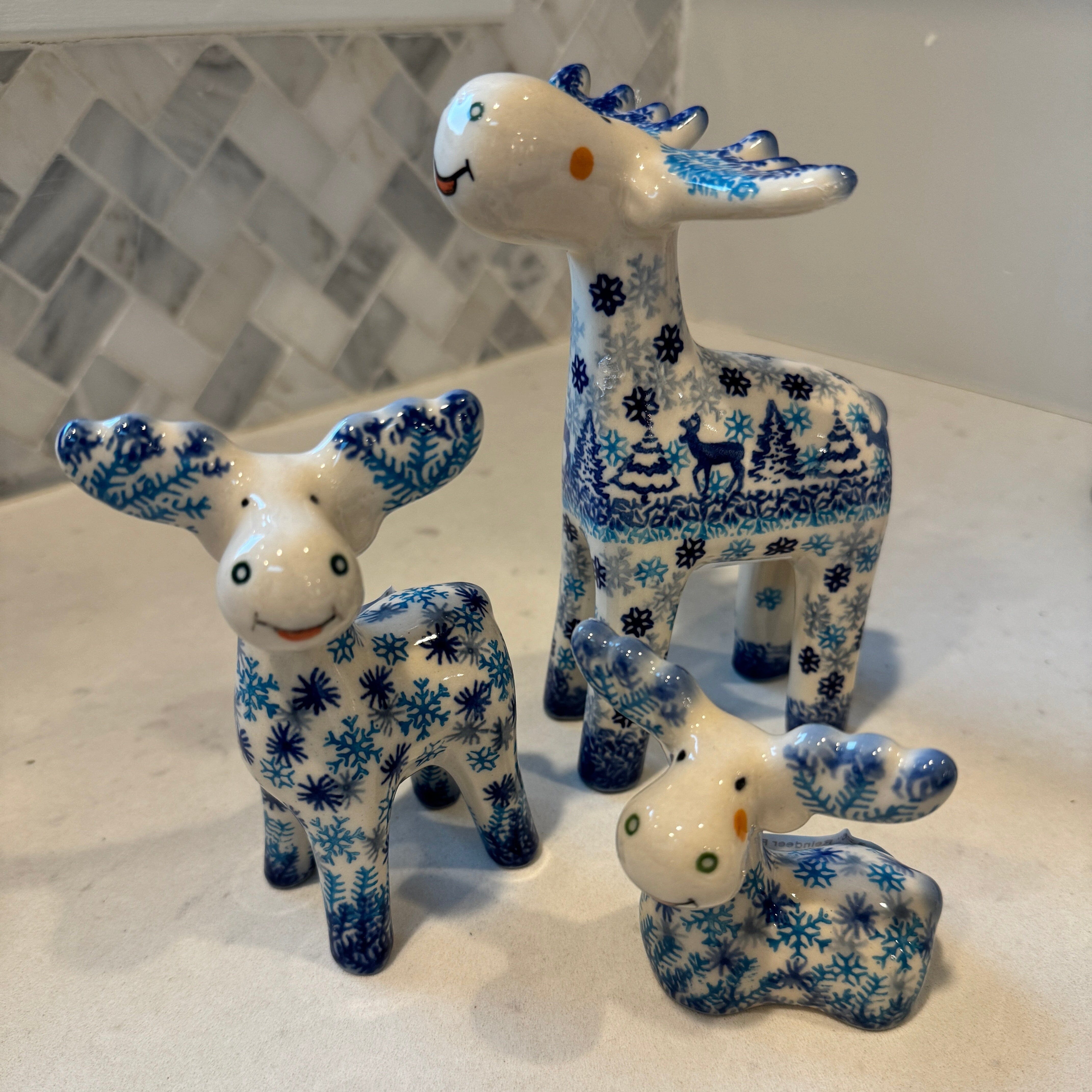 Made in the heart of Boleslawiec, Poland, this Polish pottery piece is not only a decorative gem but also a testament to the durability and quality of local craftsmanship. The materials used are not only tough and chip-resistant but also free from harmful substances like lead, nickel, and cadmium. As you set this reindeer amongst your holiday decor, it promises to be a conversation starter, blending perfectly with other pieces, or shining on its own as a festive centerpiece. With its bold colors and timeless pattern, it captures the essence of Polish heritage and the joyful spirit of Christmas.