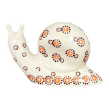 Introducing the enchanting Polish Pottery Figurine, Snail, 2.75", crafted with love by the artisans at Galia in the vibrant "Sunny Dots" pattern. Imagine a tiny, exquisite snail, frozen in time, its shell a riot of cheerful reds accented with playful yellow and mysterious black dots. But fear not—this charming ceramic creature is here to stay, adding a whimsical touch to your decor without the risk of it slipping away under the cover of night!