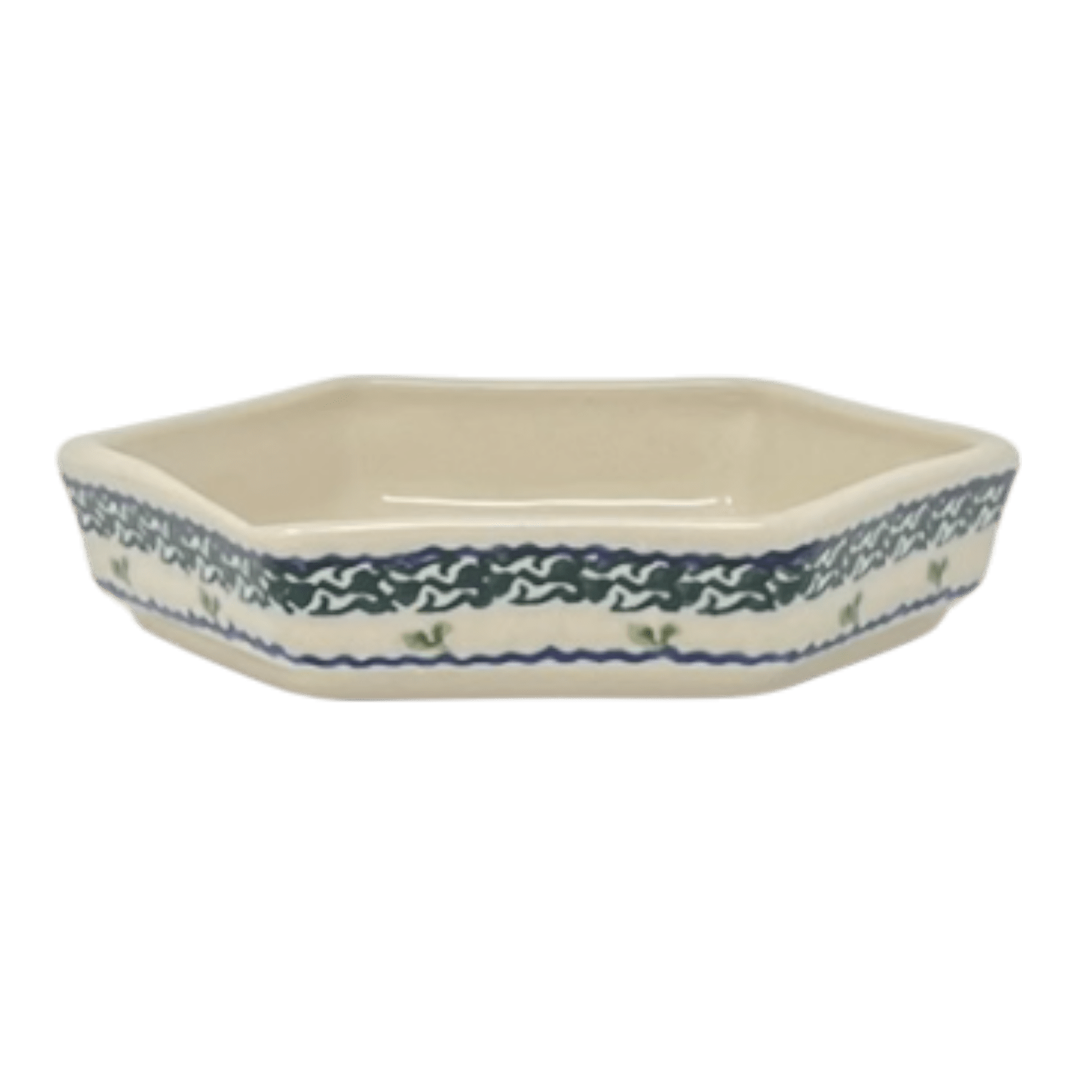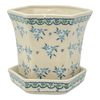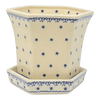 Imagine a burst of vivid reds, greens, and blues gracing your living space, bringing with them the charm of Polish craftsmanship right into your home. The Polish Pottery Flower Pot in the enchanting "Draping Red Florals" pattern is not just a vessel for your plants; it's a piece of art designed to compete with the beauty of the very flowers it holds. This hexagonal gem, standing 5 inches tall, is meticulously hand-painted in Boleslawiec, Poland by the skilled artisans of Galia. The traditional motif, featuring lush red flowers interlaced with green leafy vines and framed by a solid blue rim, embodies a timeless elegance that has adorned homes for generations.