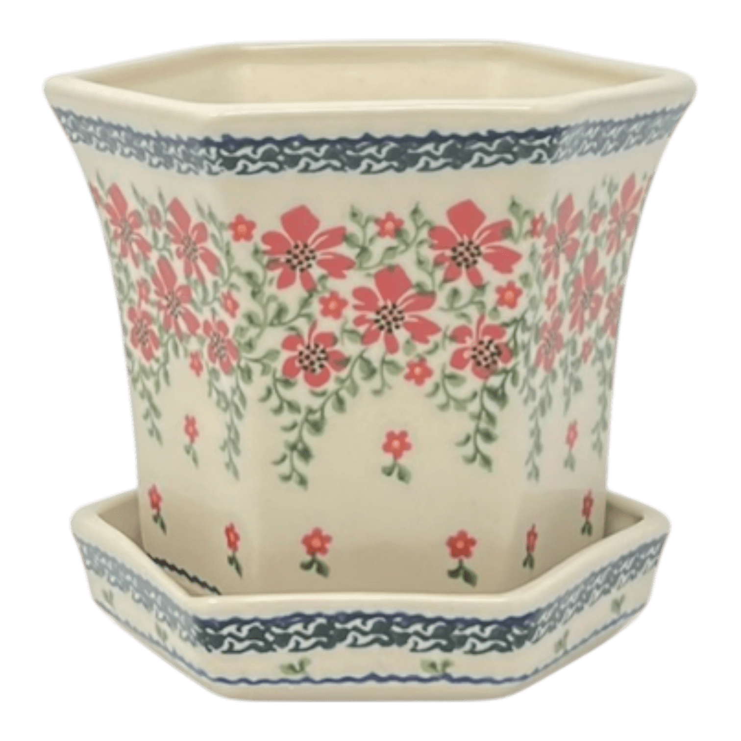 Flower Pot, Hexagonal, 5" Small in "Draping Red Florals" by Galia | GDN08-PW3 is backordered and will ship as soon as it is back in stock.