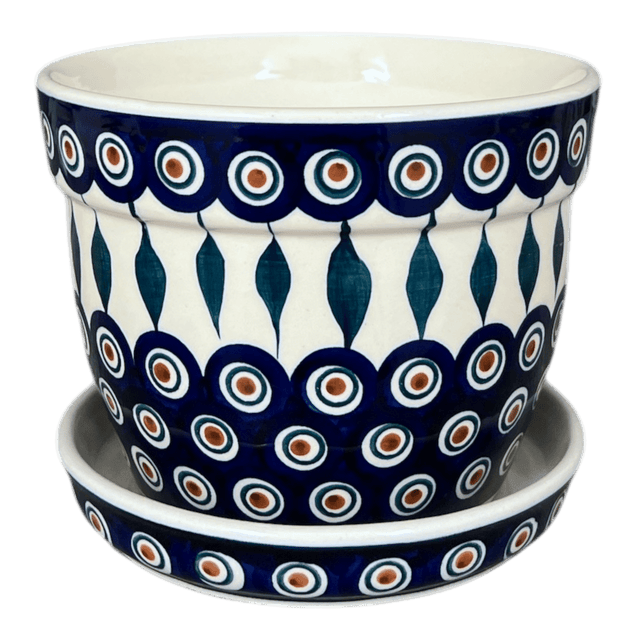 Flower Pot, with Saucer, 6" in "Peacock" by Manufaktura | D036T-54
