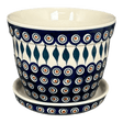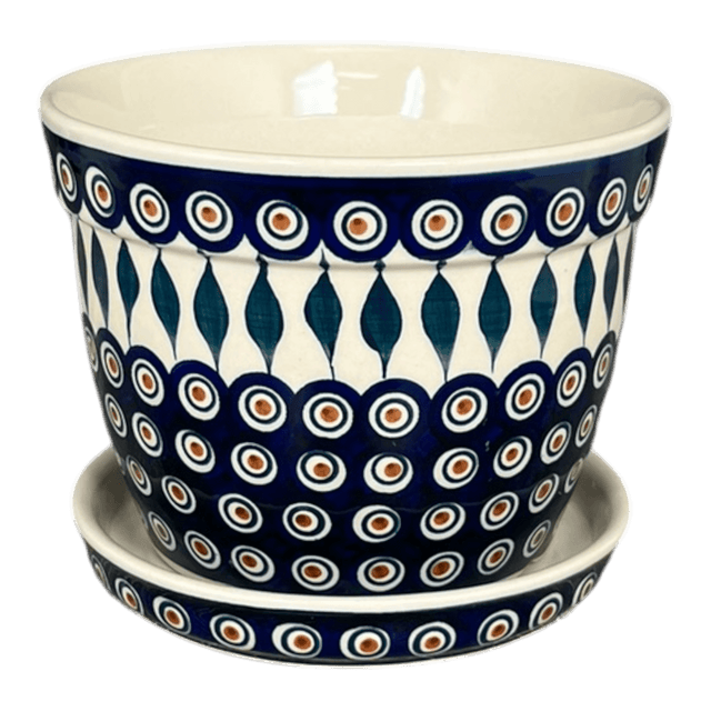 Imagine transforming your living space with a touch of timeless elegance and a splash of vibrant colors that sing of spring and joy! The Polish Pottery Flower Pot, accompanied by a charming saucer and standing proud at 8 inches, is more than just a vessel for your plants. Crafted by the renowned artisans of Manufaktura in the picturesque town of Boleslawiec, Poland, this exquisite piece boasts the enchanting "Peacock" pattern. Its mesmerizing design features a symphony of blue hues complemented by accents of green, white, and brown, echoing the majestic beauty of a peacock’s plumage spread in full glory.