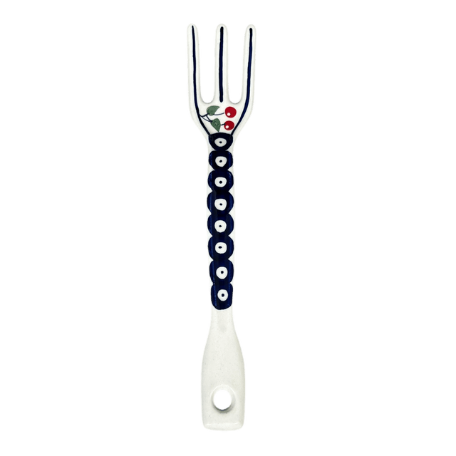 Imagine serving your delicious salads or sumptuous pastas with a touch of whimsical elegance! Introducing the Manufaktura Polish Pottery Serving Fork, a masterpiece that is as functional as it is beautiful. Crafted in the heart of Boleslawiec, Poland, this 12-inch serving fork is adorned with the charming "Cherry Dot" pattern. Picture vibrant red cherries and playful white polka dots, all set against a soothing blue background. This design not only captivates the eye but also brings a splash of color and cheer to any dining table.