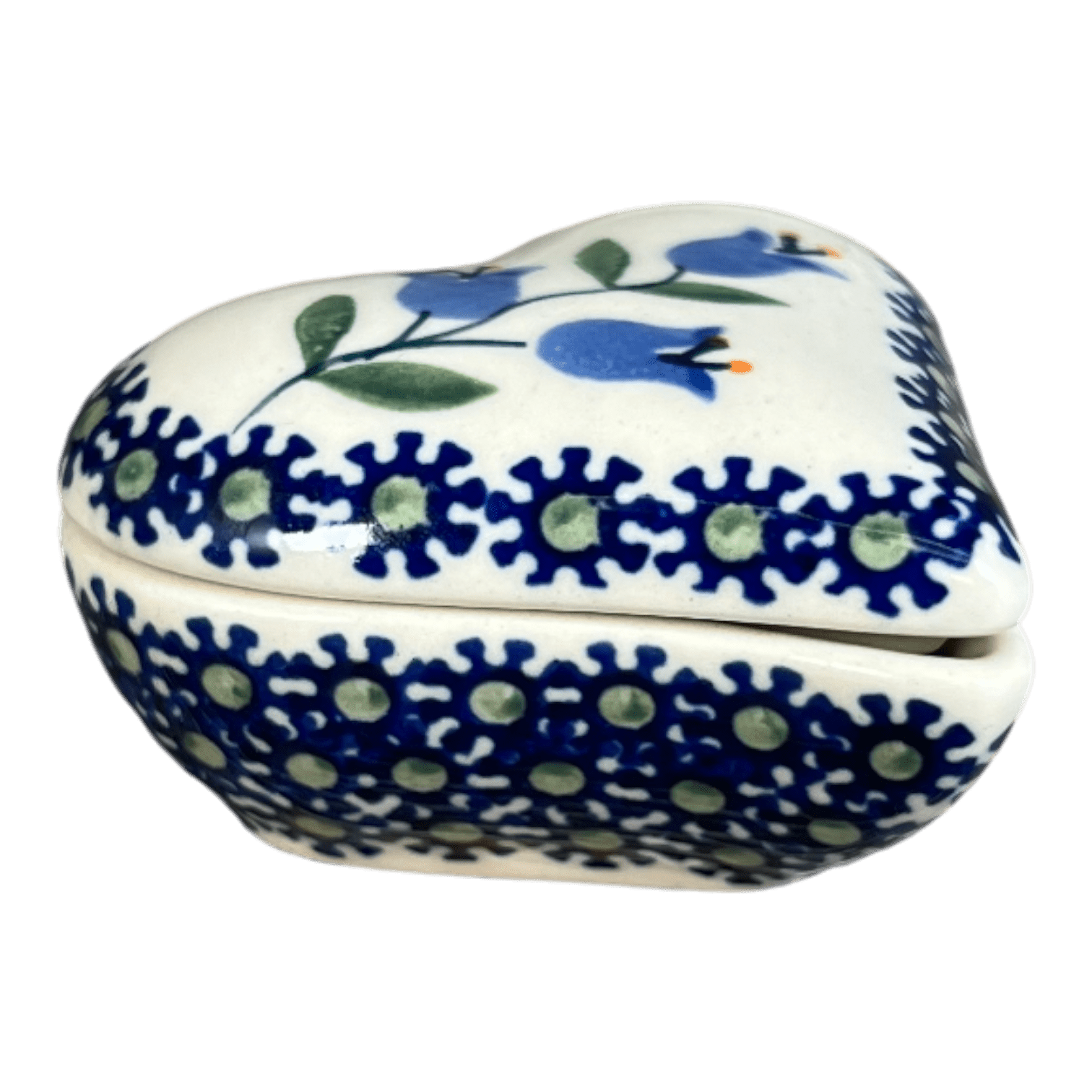 This heart-shaped treasure is not only a feast for the eyes but also a marvel of durability, crafted in the heart of Boleslawiec, Poland. Whether it's safeguarding your cherished items or simply sitting pretty on a shelf, this box is versatile enough for any setting. Beyond its charm and utility, it's a robust companion too – safe for use in the dishwasher, microwave, freezer, and oven up to 425 degrees. Thanks to its high-quality material, it resists chips and is devoid of lead, nickel, and cadmium, ensuring that it's as safe as it is stunning.